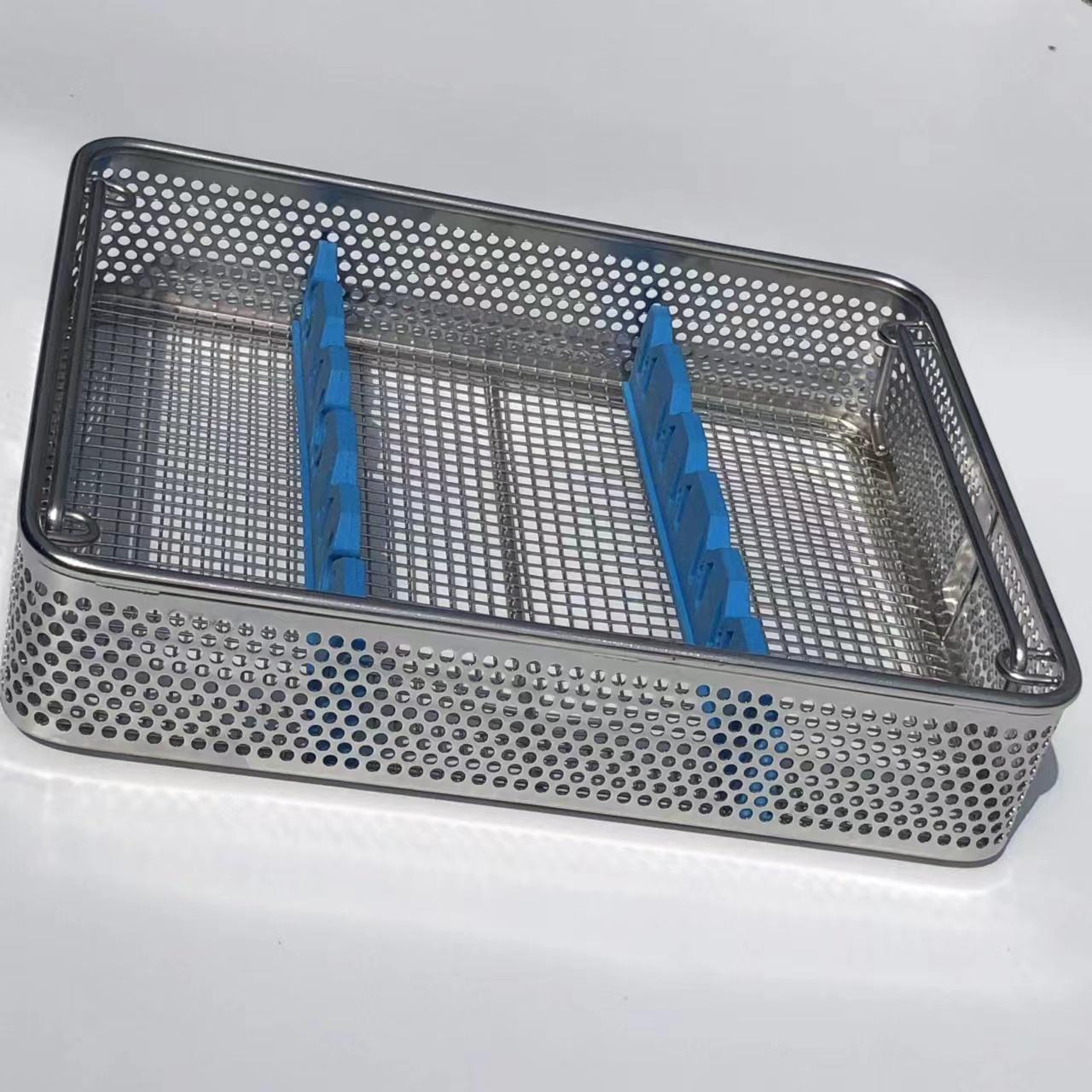 **消毒盒网篮装载篮筐**可以用于装载各种消毒物品,在消毒过程中起到承载和保护的作用。这种篮筐采用不锈钢材质,耐腐蚀、耐高温,能够适应各种消毒环境。其网篮结构设计,使得消毒液体能够充分接触到物品表面,提高消毒效果。同时,篮筐的边缘经过处理,不会刮伤物品,保证物品的完整性。