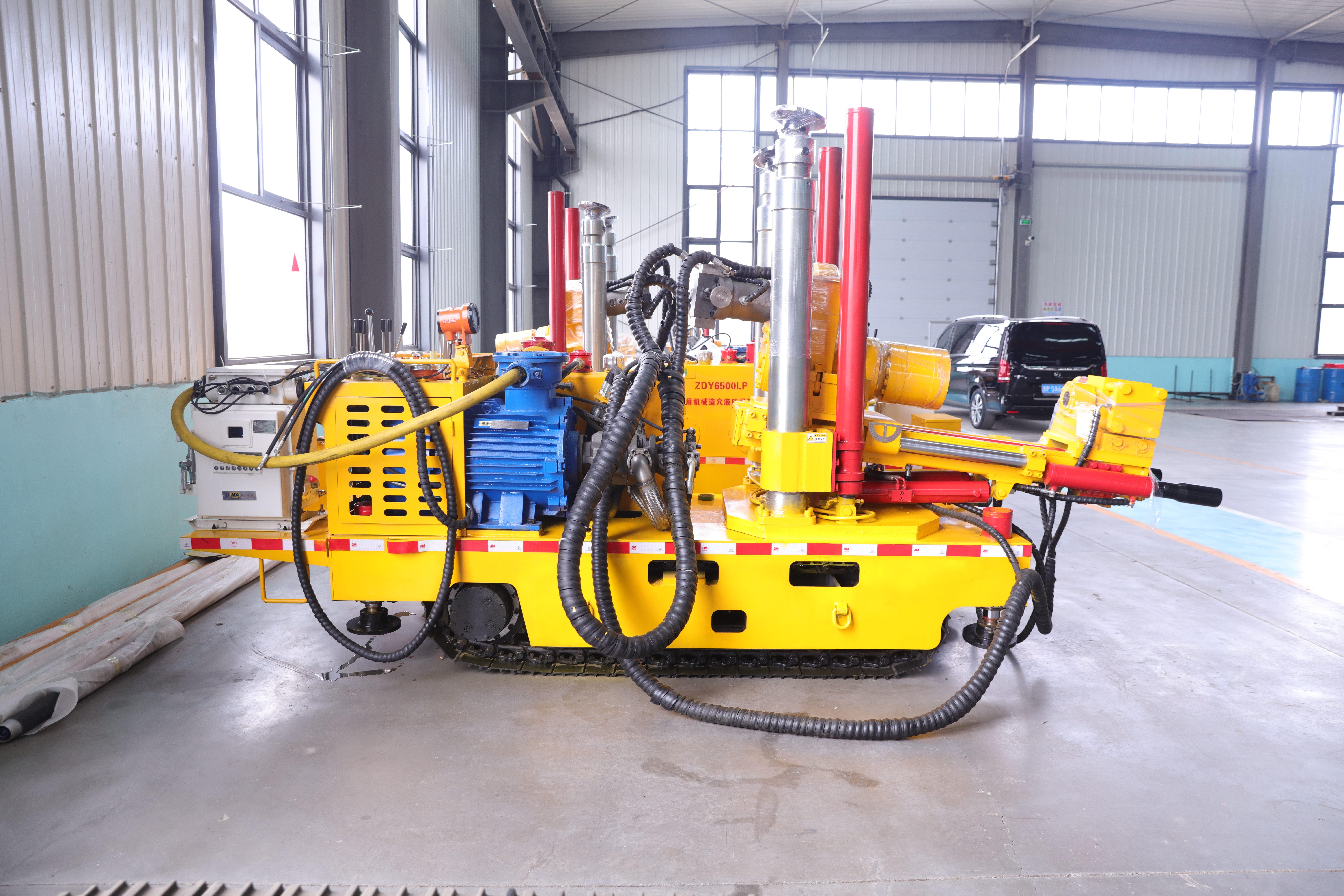 煤矿用履带式全液压坑道钻机则结合了履带式行走和全液压驱动的优势。履带式行走方式使得钻机在煤矿井下能够灵活移动,适应各种地形。全液压驱动则提供了强大的动力输出,保证了钻机的高效钻进。这种钻机在煤矿开采中,可用于瓦斯抽放钻孔、探水钻孔等多种作业。