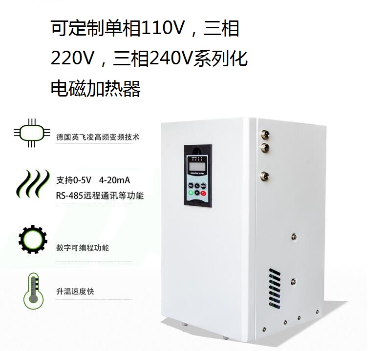 江信电磁加热器具有高效节能、智能安全、环保耐用、应用广泛等核心优势。在高效节能方面,采用电磁感应技术,热转换效率达90%以上,较传统加热方式节能30%-50%。支持宽电压设计(310V-440V),适应电网波动环境,确保稳定输出。在智能安全方面,内置IGBT模块过热保护(85℃触发)、短路/缺相保护等多重防护系统,实现水电分离,杜绝漏电风险。PID温控功能支持0-5VDC精准调节,满足工业级精度需求。在环保耐用方面,以清洁电力为能源,运行零排放、静音无污染。磁化水技术减少水垢沉积,延长设备寿命,降低维护成本。在应用广泛方面,覆盖塑料加工、食品烘干、原油管道加热等工业领域,同时适配家用采暖、商用电磁灶等场景,支持多机并联作业。
