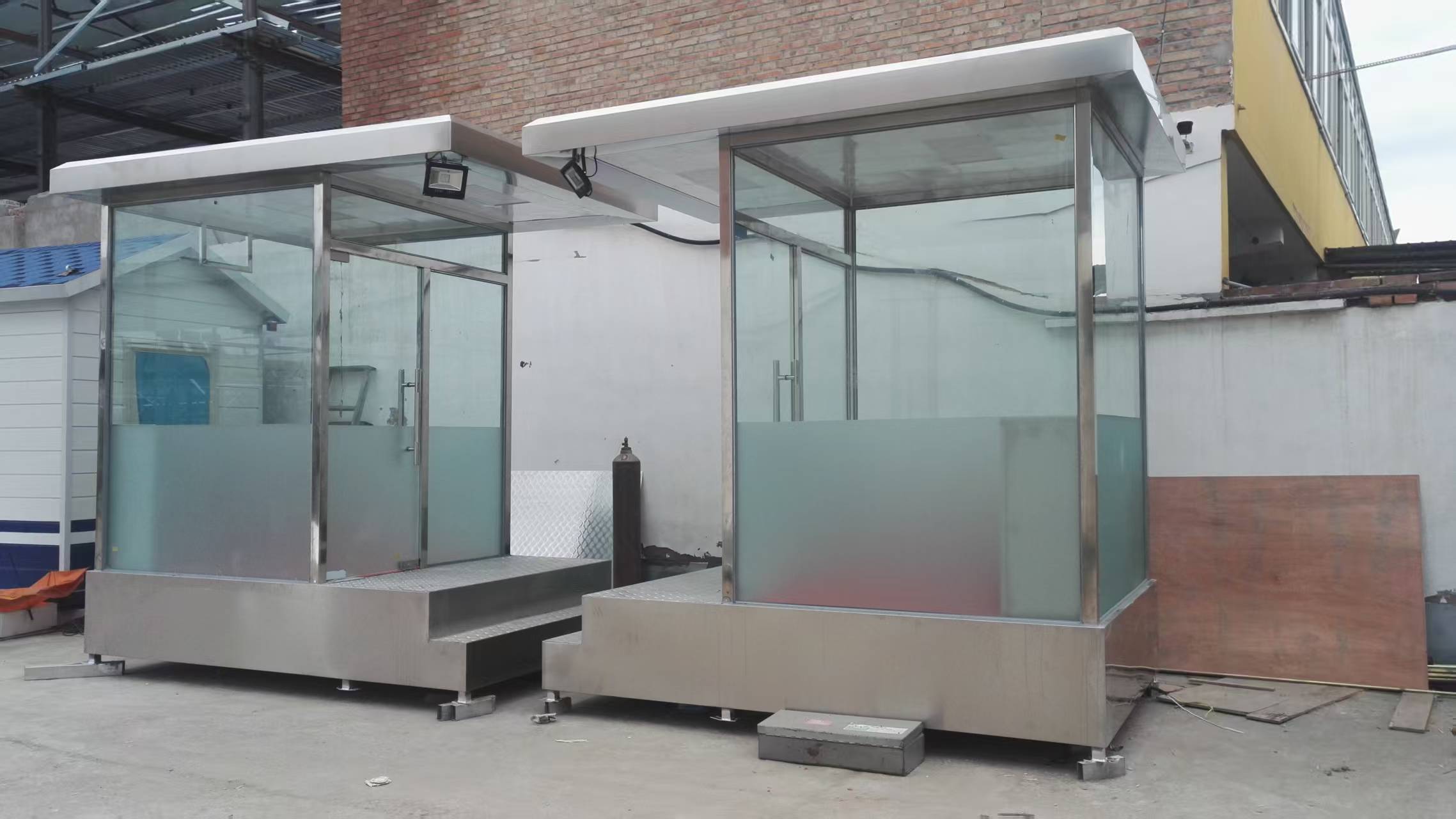 1. **材料选择**:钢材选用首钢、宝钢等大型钢厂优质产品,关键部位采用304不锈钢,确保产品的质量和性能。 2. **加工工艺**:采用激光切割、机器人焊接等先进工艺,确保加工精度,使岗亭的各个部件连接紧密,结构稳固。 3. **表面处理**:经过除油、除锈、磷化、静电喷涂等多道工序,防腐性能优异,岗亭表面色泽鲜艳,不易褪色。 4. **质量检测**:每道工序设立质量检查点,成品进行48小时连续测试,确保每件产品都达到相应的技术标准。公司检测中心配备涂层测厚仪、盐雾试验箱等专业设备,可对岗亭的各项性能指标进行严格检测。 5. **安装服务**:拥有专业的安装团队,提供标准化安装服务,确保岗亭的安装质量和使用效果。