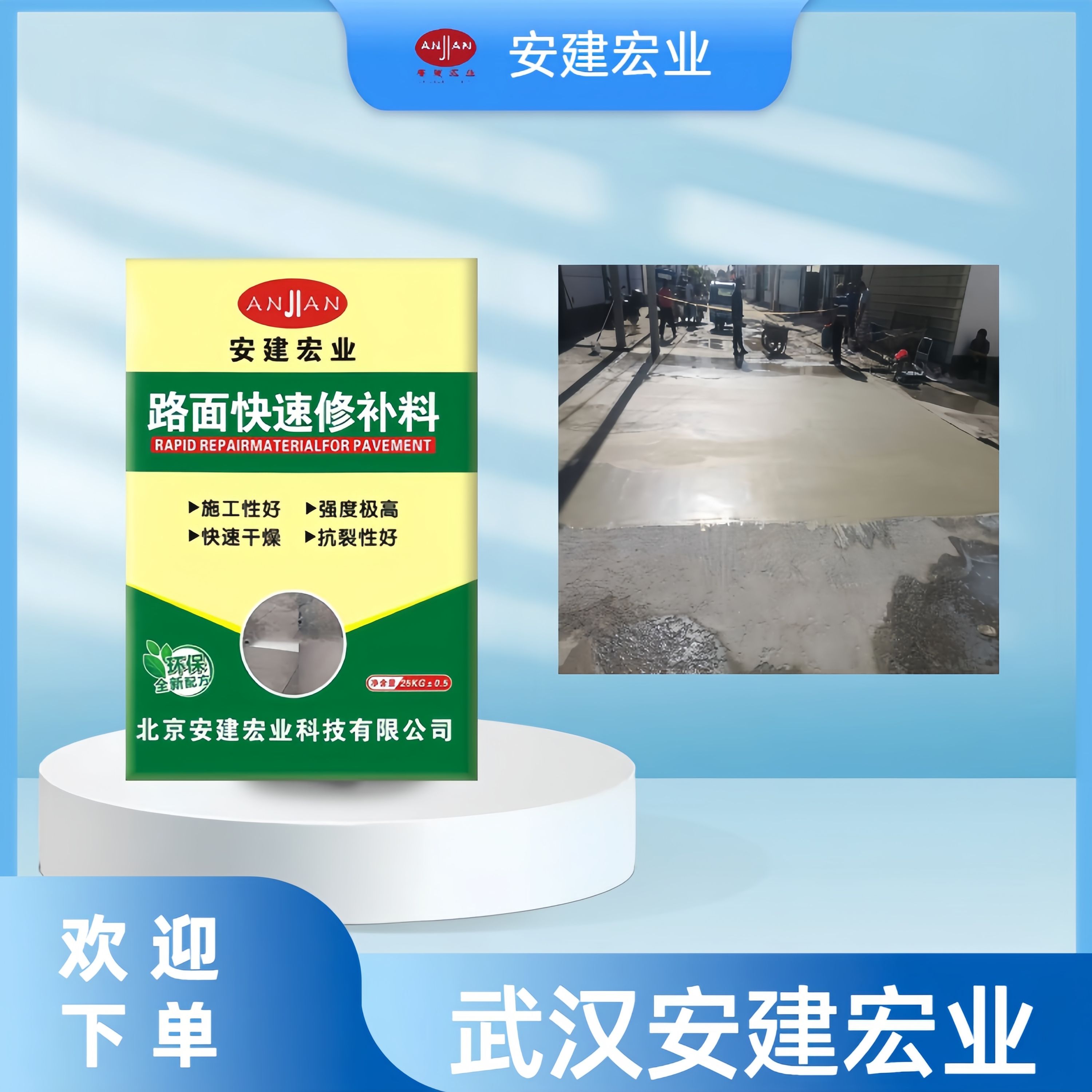 北京安建宏业科技有限公司是一家集科研开发、生产、销售、技术服务为一体的专业化建材公司,主营产品包括路面修补料、地面修补料、路面快速修补料等。这些修补料广泛应用于高速公路、乡村道路、厂矿园区、收费站、停车场、驾校、加油站、学校、小区、飞机场、桥梁伸缩缝等水泥混凝土路面的破损、蜂窝、麻面、起砂、起皮、露骨、冻融及微细裂缝等病害的修补。