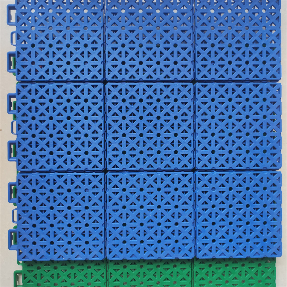 **悬浮拼装地板**:采用环保材料制作,不仅对环境友好,而且安装过程十分便捷。它采用独特的悬浮式设计和卡扣式连接,可根据不同场所的需求进行灵活拼装,无需复杂的地基处理,可直接铺设在平整的地面上,大大缩短了施工周期,降低了施工成本。同时,这种设计也便于后期的维护和更换,当某一块地板出现问题时,可以轻松地进行拆卸和更换,不影响整个地面的使用。此外,悬浮拼装地板还具有良好的排水性能,能有效应对雨水天气,避免积水问题,适用于户外篮球场、网球场等运动场地。
