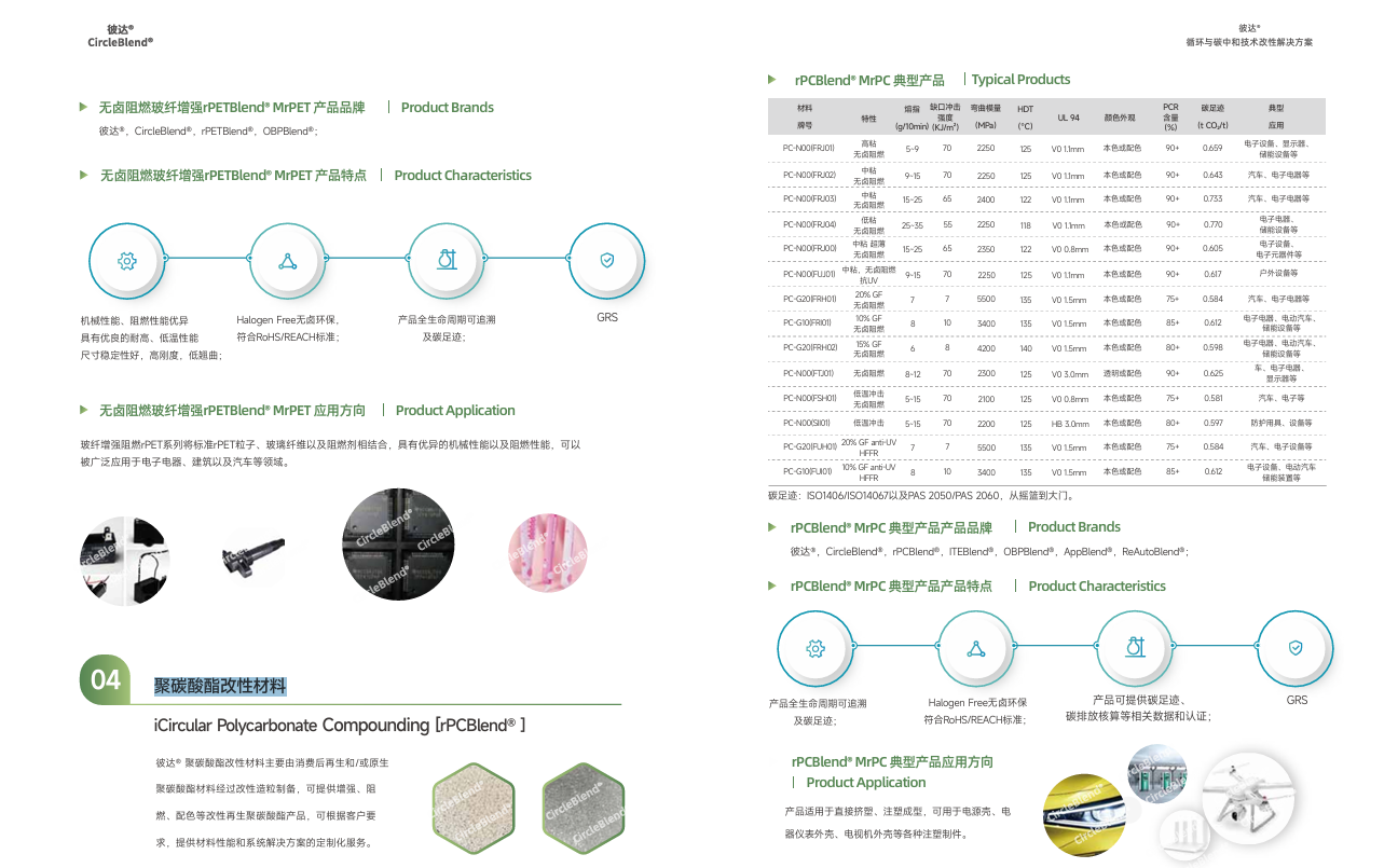 浙江彼达新材料技术有限公司在行业内拥有较高的市场规模与良好的口碑。其核心品牌CircleBlend®彼达®是循环功能材料的代表。该品牌系列产品秉承循环经济理念,采用先进的回收材料和工艺,成功开发出包括MrABS [rABSBlend®]、MrPP [rPPBlend®]、MrPET [rPETBlend®]、MrPC [rPCBlend®]、MrPCAlloy [rPCAlloyBlend®]、MrPA [rPABlend®]、MrPBT [rPBTBlend®]在内的全品类绿色环保功能化产品。这些产品不仅具备优良的热稳定性和加工性能,更显著降低碳排放,是高性能与环保责任的良好结合,充分传递了彼达为客户创造价值与守护环境的坚定决心。