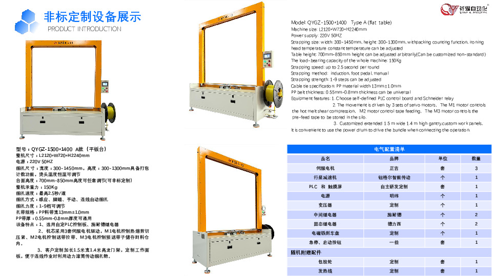 东莞市祈耀自动化设备有限公司不仅提供打包机单机设备,还能为客户提供定制化服务,例如:纸箱开箱、装箱封箱、捆扎、码垛输送整体解决方案及设备,曾为苹果、谷歌、三星等大型企业研发生产定制设备,同时持续服务国内众多大型企业。