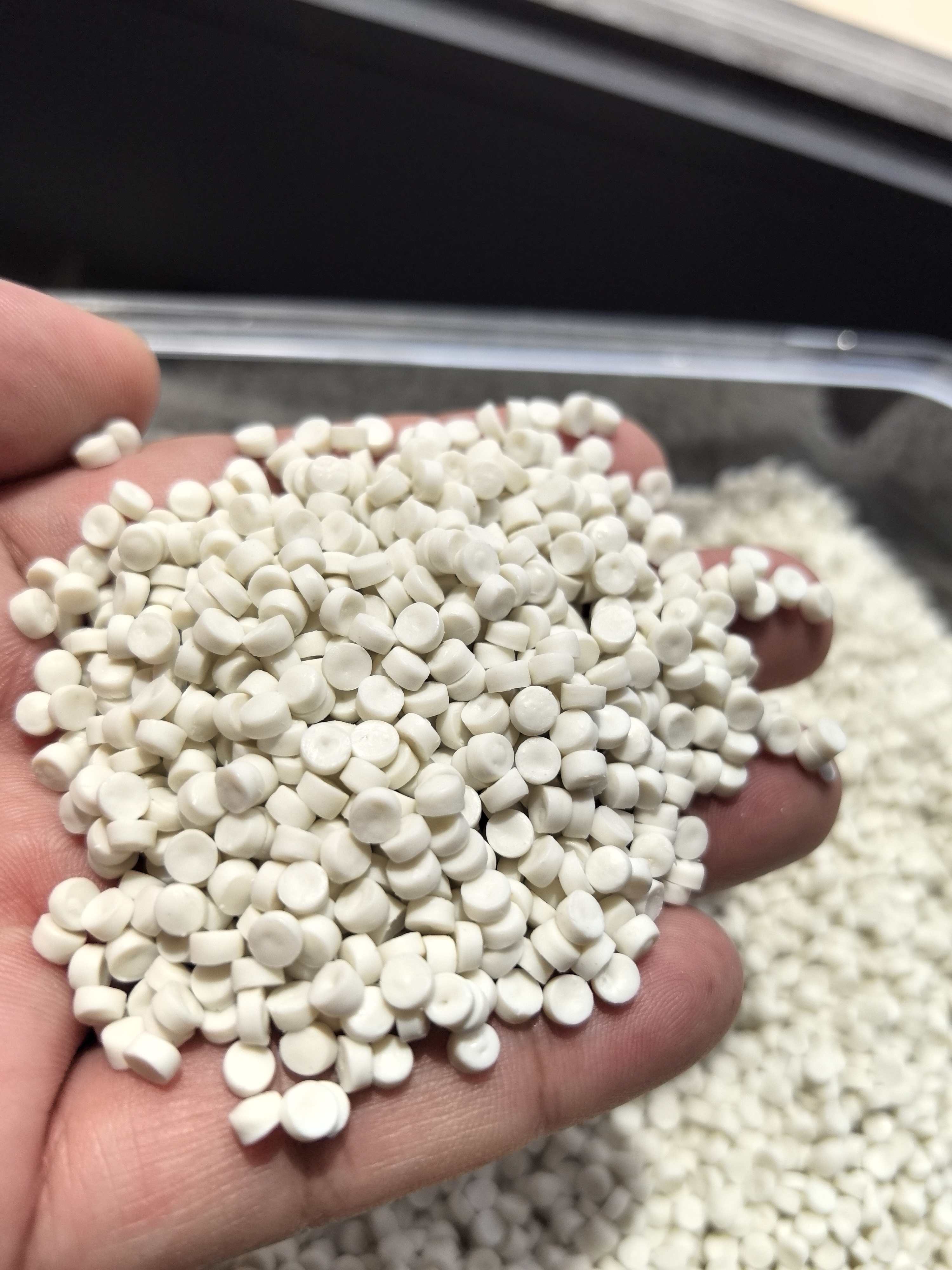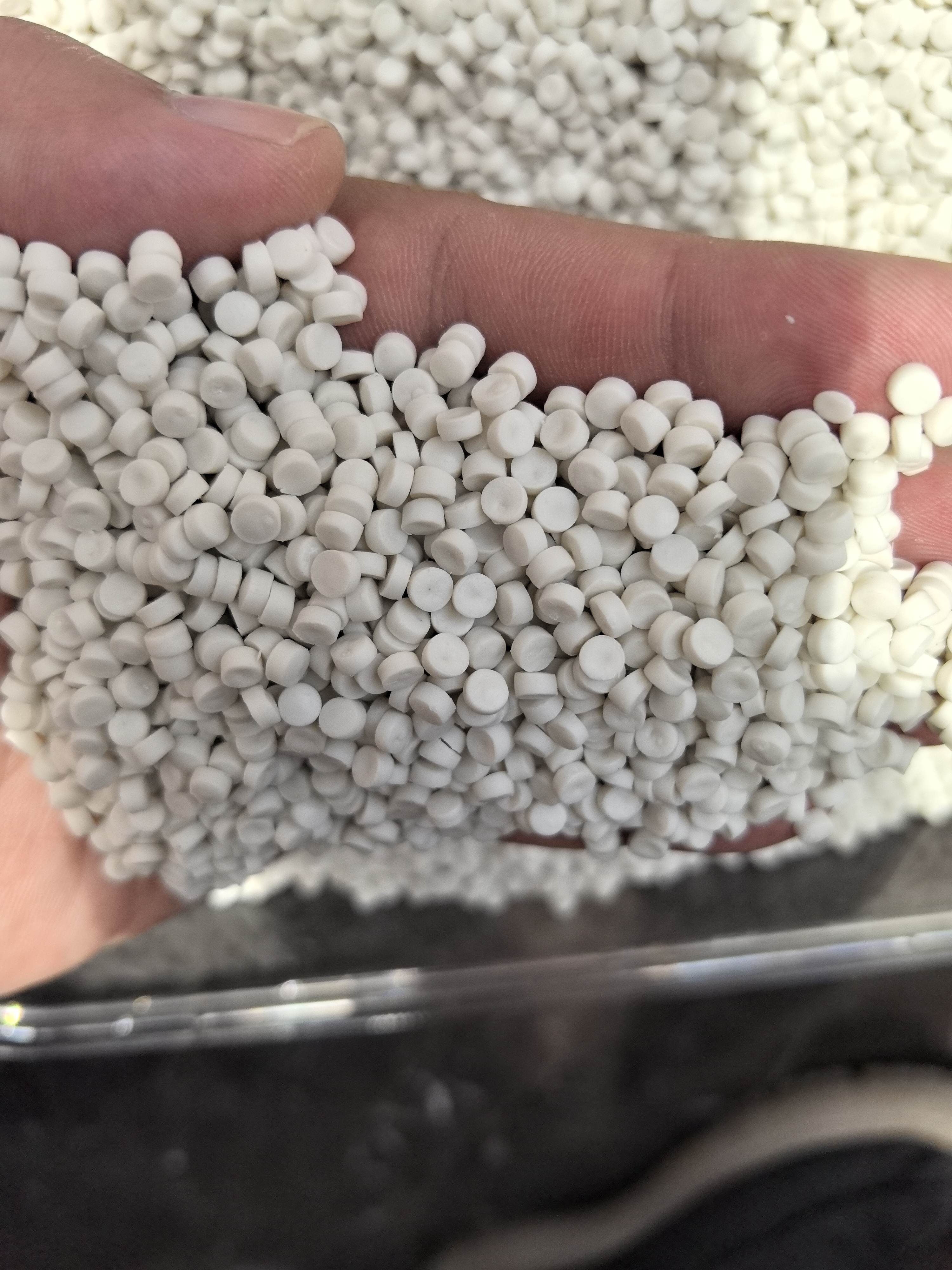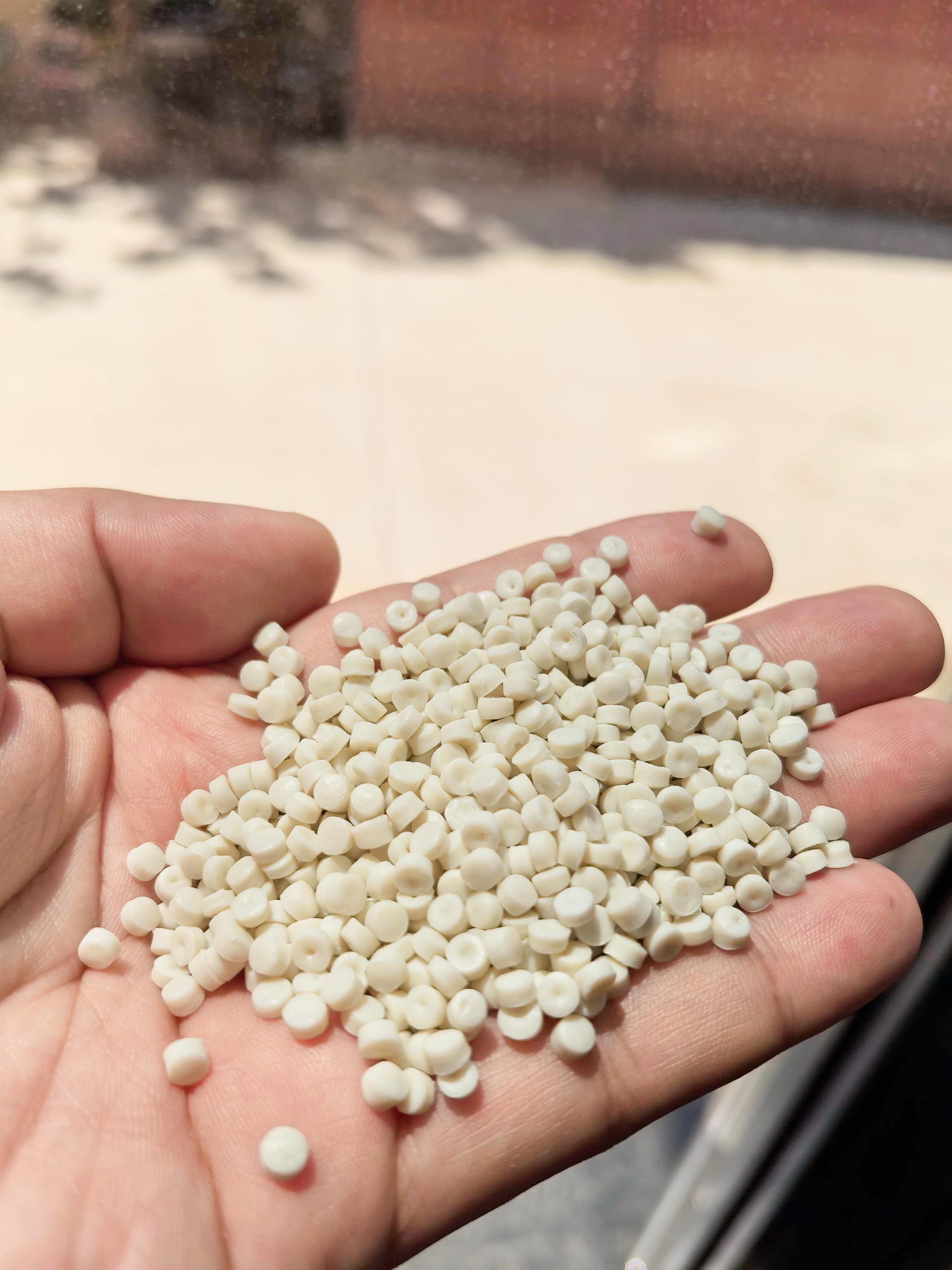 2. 压板奶白色HDPE再生颗粒:冲击强度和弯曲强度表现较好,适用于压板成型工艺,可制作塑料托盘、周转箱、建筑模板等。均匀颗粒大小与稳定物理性能确保压板制品的一致性和耐用性。