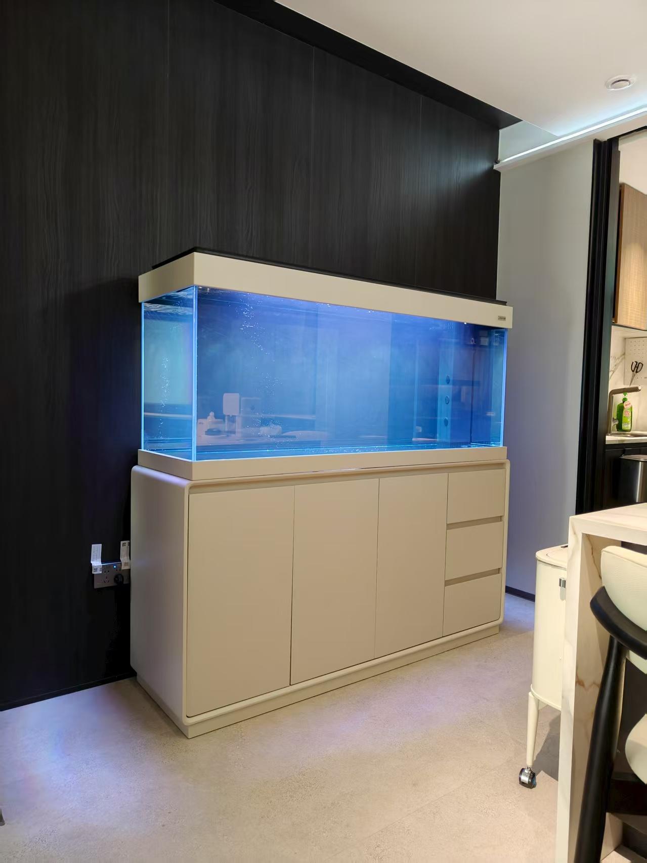 负压鱼缸也是六如家居鱼缸的特色产品之一。负压鱼缸利用负压原理,使鱼缸内的水保持稳定,减少了水的波动,为鱼儿提供了一个更加安全、舒适的生活环境。同时,负压鱼缸的设计独特,能够吸引人们的目光,成为家居装饰的亮点。