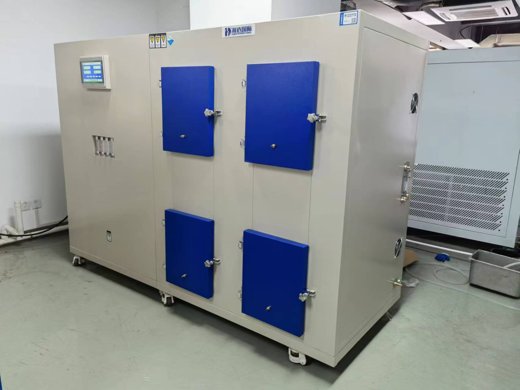 4舱塑胶跑道环境舱是济南弘为科技有限公司的重要产品之一。它能够模拟不同的环境条件,如温度、湿度、光照等,为塑胶跑道材料的性能测试提供了一个精准的环境。在实际应用中,4舱塑胶跑道环境舱可以同时对多个样品进行测试,大大提高了测试效率。而且,该环境舱的温度控制精度能够达到±0.5℃,湿度控制精度达到±3%RH,能够满足各种严格的测试要求。通过在4舱塑胶跑道环境舱中进行测试,可以准确评估塑胶跑道材料在不同环境下的老化程度、物理性能变化等,为塑胶跑道的质量提升提供有力的数据支持。