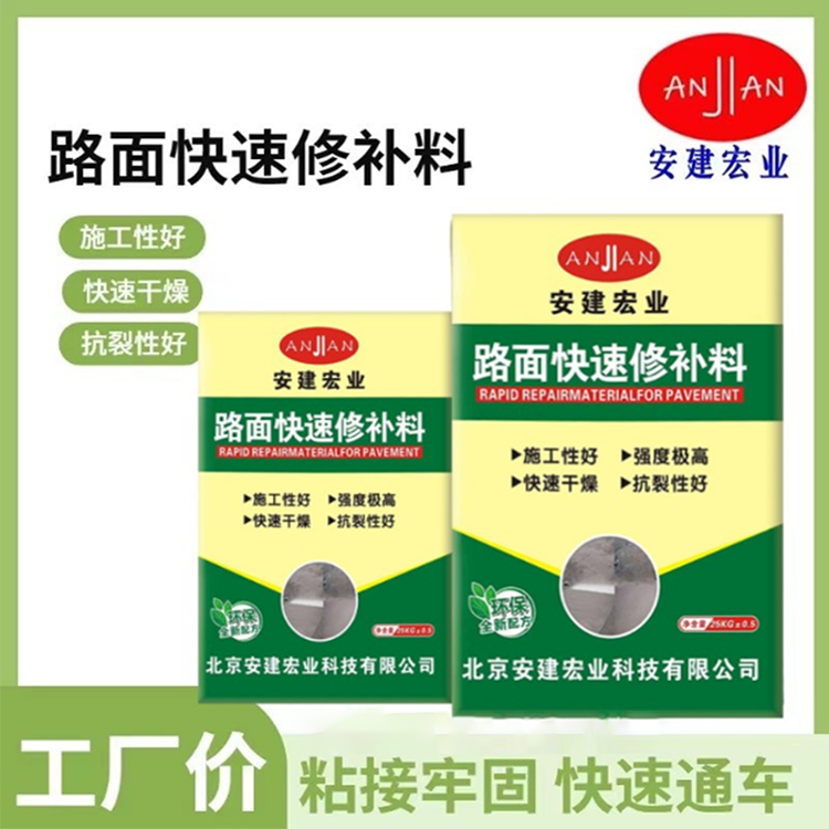 北京安建宏业科技有限公司主营产品丰富多样,涵盖了厂区路面修补料、快速通车修补料、市政道路修补料等。厂区路面修补料是专门为厂区路面的修补而设计的。在厂区,车辆往来频繁,路面容易出现各种损坏,如裂缝、坑洼等。该修补料能够快速有效地修复这些损坏,恢复路面的平整度和承载能力。它具有粘结性强的特点,能够与原有路面紧密结合,不易脱落。而且其耐磨性好,可以承受车辆的反复碾压,延长路面的使用寿命。