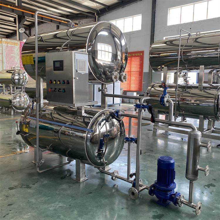 **水浴杀菌锅**:采用水浴加热的方式,温度均匀,能够避免产品因局部过热而受到损坏。它常用于一些对温度要求较为严格的产品杀菌,如一些高档食品、化妆品等。水浴杀菌锅的优点是杀菌效果好,产品质量有保障。