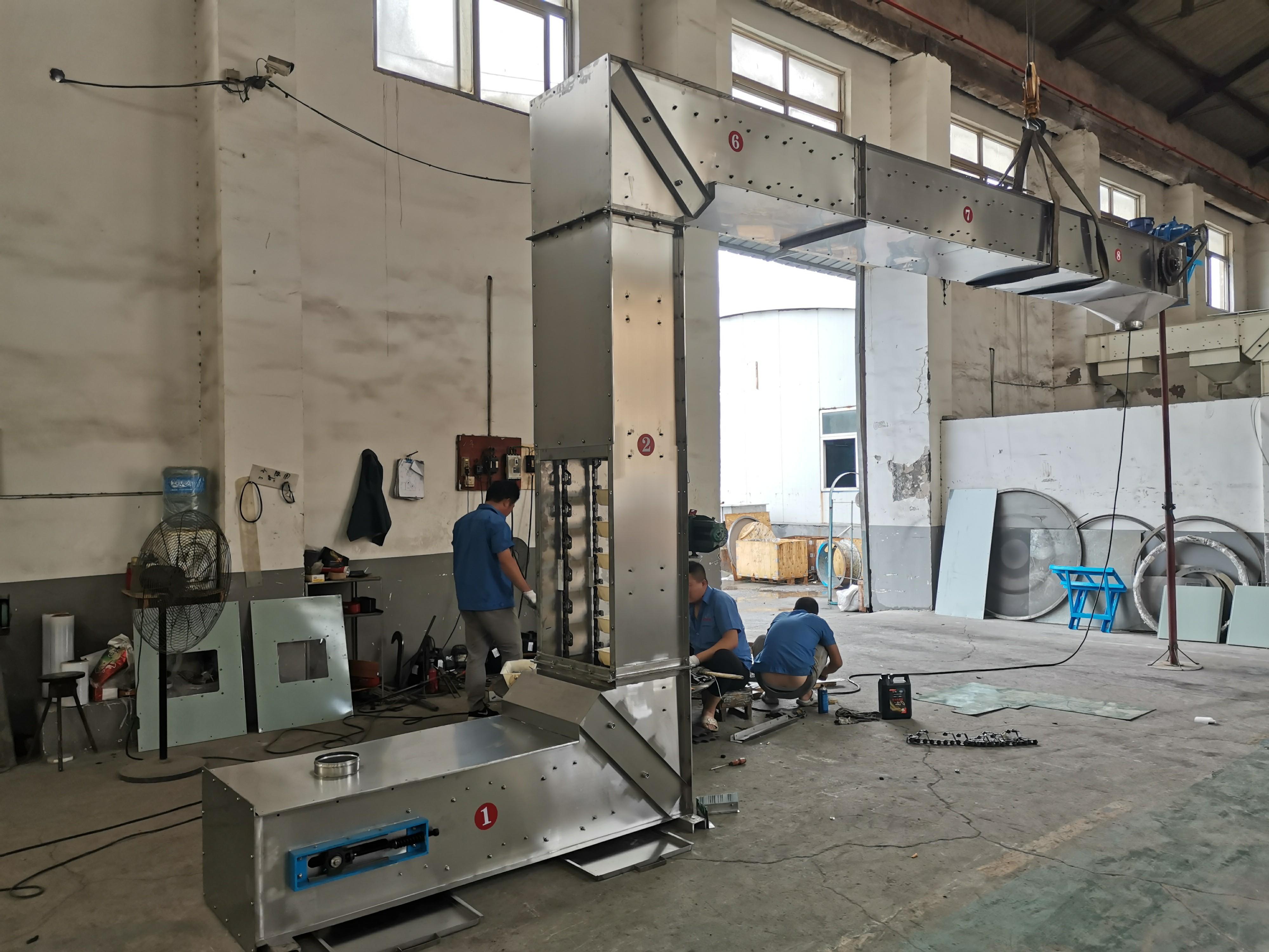 在能耗与适配性上,新乡市恒宇机械设备有限责任公司的提升机采用单电机驱动 + 变频调速,功率较同类产品降低15% - 20%,实现了节能降耗。而且可输送 - 20℃至150℃物料,支持多点进料与卸料定制,适配化工、耐材、矿产等多行业,可实现Z型、C型、ZC混合型等多种输送形式,适配复杂工况。在空间与环保方面,水平 - 垂直 - 水平一体化结构,占地面积较传统方案减少40%,可灵活布置于空间受限厂房,替代 “垂直提升机 + 水平输送机” 组合,提升空间利用率。全封闭壳体无泄漏、无扬尘,符合环保要求,改善作业环境。