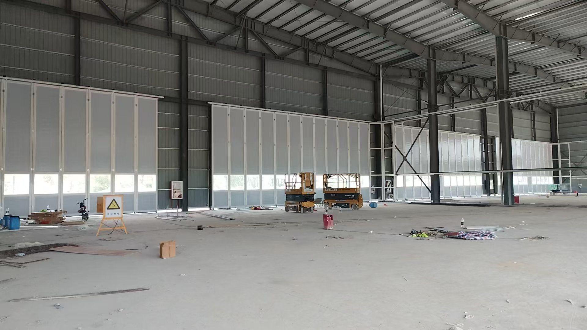 折叠机库门:折叠机库门可以通过折叠的方式进行开启和关闭,具有占用空间小、开启速度快等优点。适用于对空间要求较高的机库。