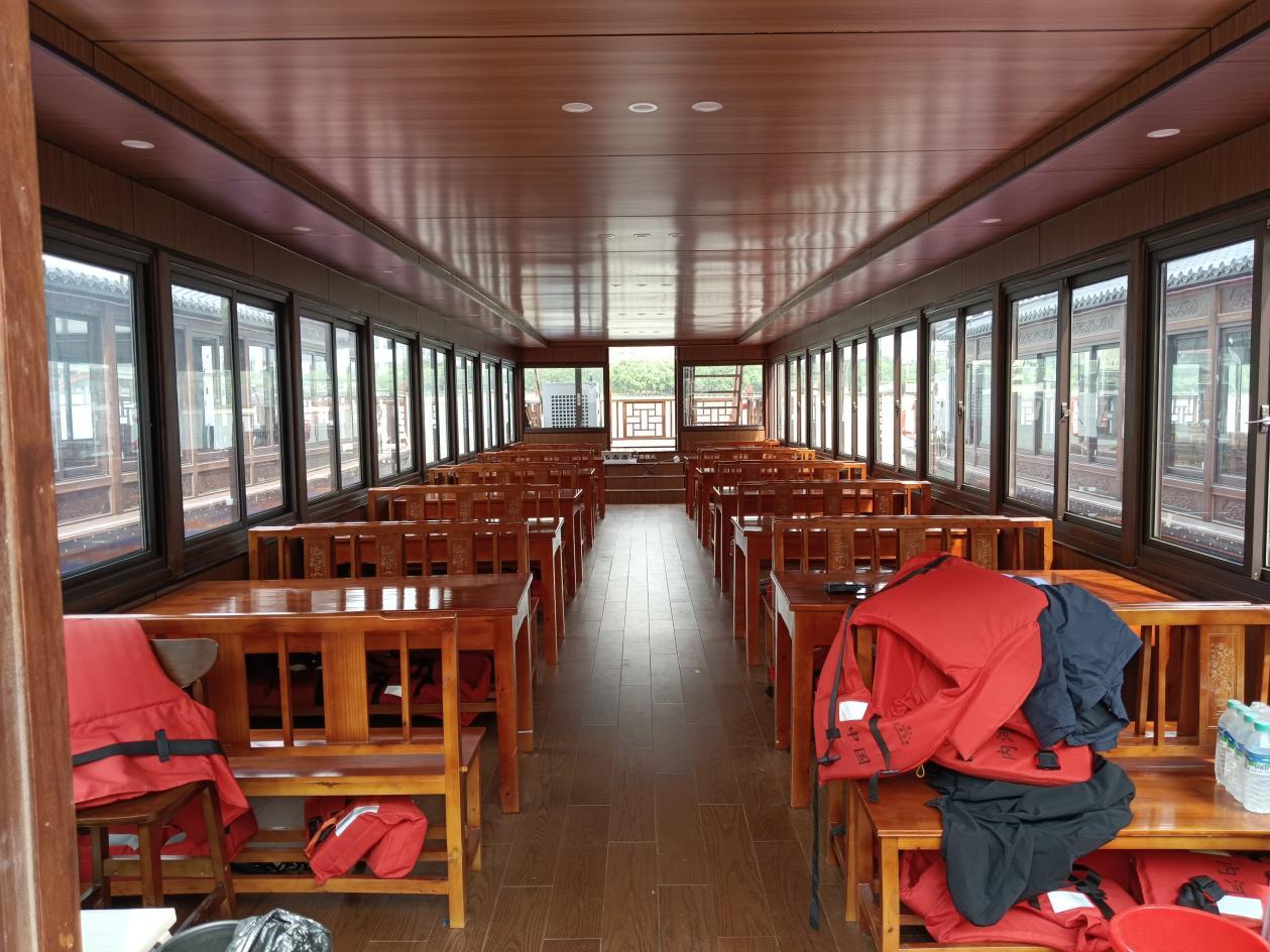 仿古游船则具有独特的文化魅力。它的设计灵感来源于古代的船只,外观造型古朴典雅,能够让游客仿佛穿越回古代。仿古游船常用于一些具有历史文化底蕴的景区,为游客提供一种别样的游览体验。江苏兴扬船业有限公司在制作仿古游船时,注重细节和工艺,力求还原古代船只的风貌,同时也融入了现代的技术和材料,确保游船的性能和安全性。
