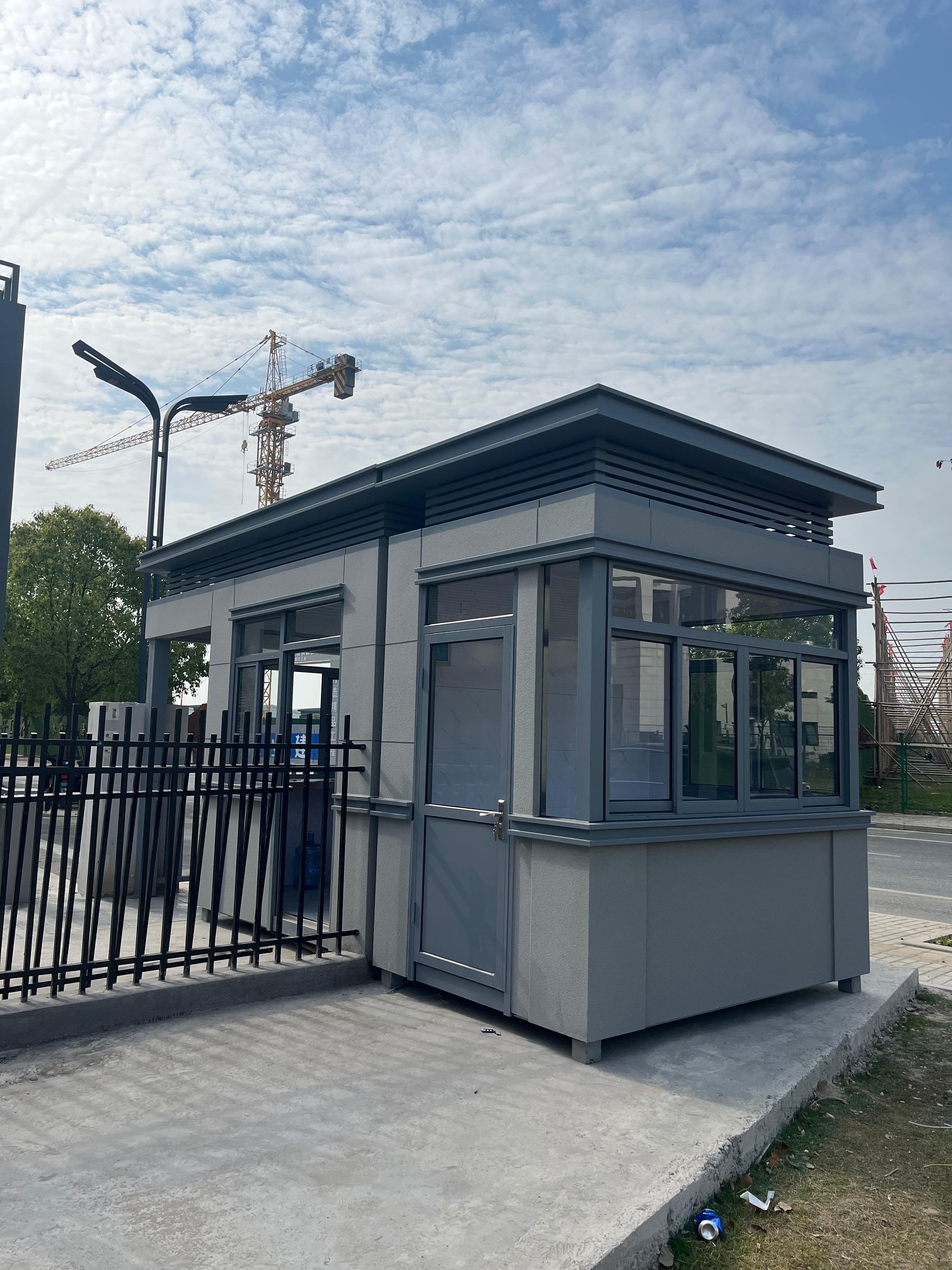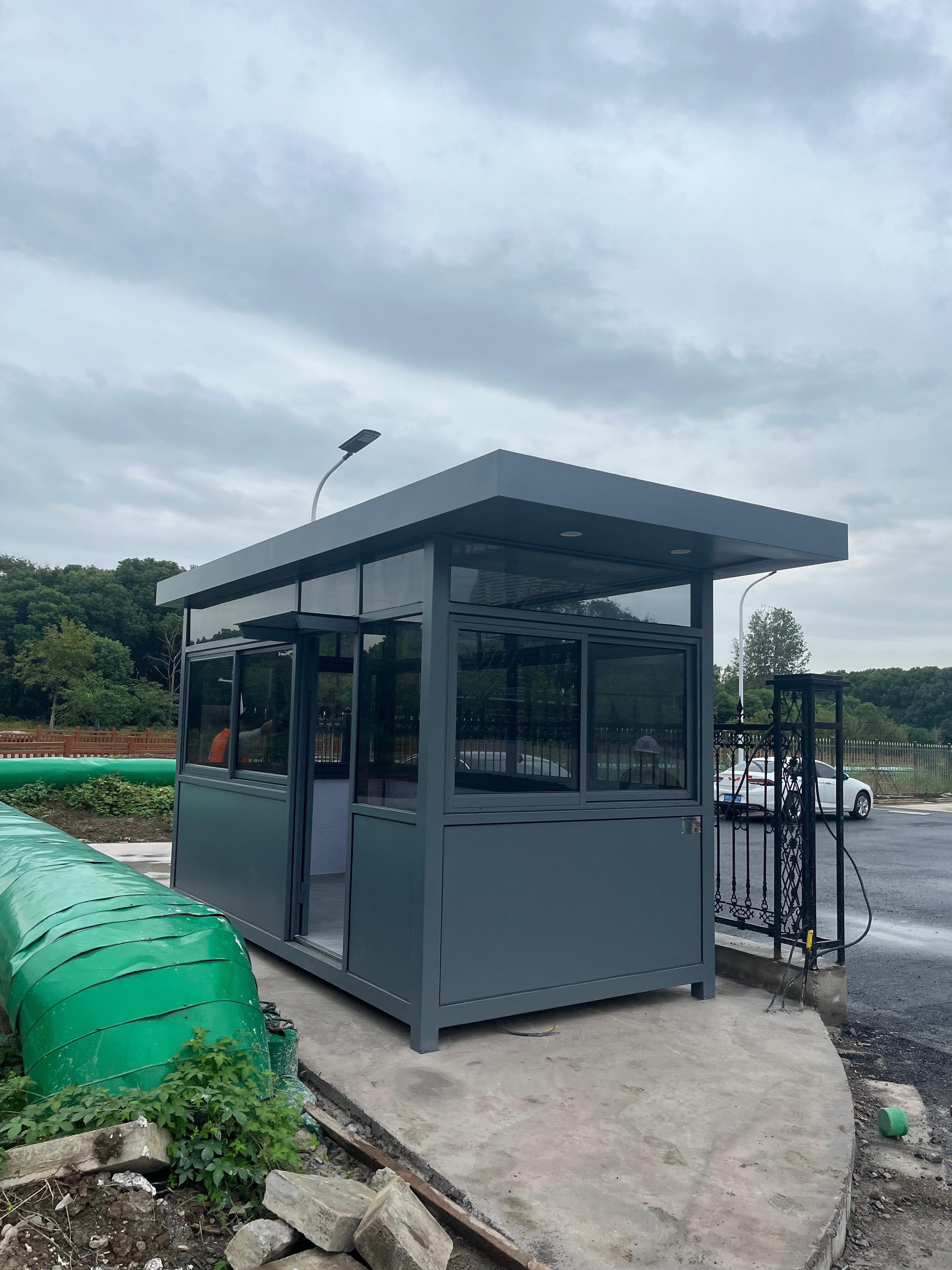 多麦岗亭是功能与耐用性的很好融合。其岗亭底座采用碳钢方通焊接而成,如同坚固的骨架,为整体结构筑牢根基,能够抵御日常使用中的各类外力冲击。墙体选用优质环保彩钢夹芯板,不仅美观大方,更兼具防火防潮的实用性能,让岗亭在日晒雨淋中也能保持稳定状态。窗户部分,不锈钢门窗与塑钢门窗的多样化选择,既满足了不同场景的需求,又保证了良好的密封性与透光性。内部配电系统完善,吸顶灯、开关插座一应俱全,线路暗铺设的设计既美观又安全,还预留了空调进出口,为在岗人员打造舒适的工作环境。更值得一提的是,多麦提供上门测量与量身定制服务,专业设计团队会根据客户的具体需求,从尺寸、开门位置到内部布局,打造贴合实际使用的岗亭方案,真正实现“一亭一设计”。
