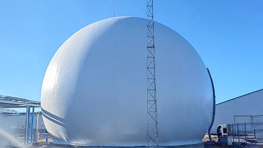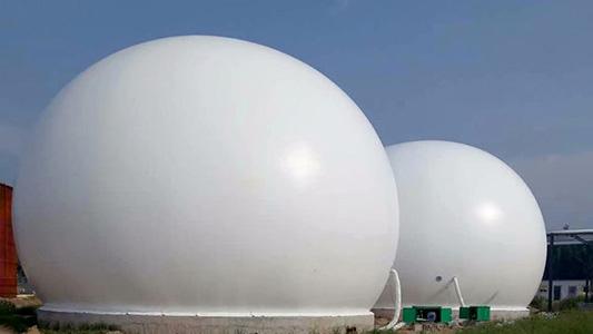 双膜气柜是公司的核心产品之一。它遵循中国《沼气工程设计规范》,适配国内外沼气工程需求。其核心参数表现出色,甲烷渗漏≤0.01%,耐温-40℃~70℃,抗风12级,膜材抗拉≥6000N/5cm,MTBF≥8760小时,达全球较好水平。膜材精选自国内外优质供应商,采用PVC涂层聚酯织物精心制作,表面处理工艺多样且先进,赋予膜材低甲烷渗透性、出色的耐硫化氢气体腐蚀能力、优异的抗紫外线性能及显著的抗霉变特性。搭配高频热合5道专利工艺,保障甲烷0渗漏与耐用性;配备自动控制系统实现恒压输出,搭配电子、物理双阀门及超压、燃气泄漏警报系统,产品寿命≥15年,可适配全球各类极端气候场景稳定运行。