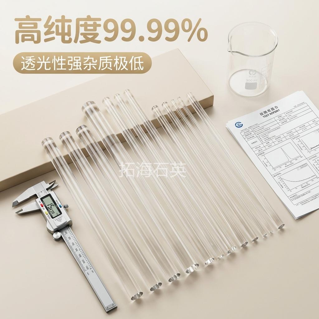 高温搅拌用石英棒,凭借其耐高温和高强度的特性,可在高温环境下进行搅拌操作,保证搅拌的稳定性和可靠性。光学透过用石英棒,具有高光学透过率,能满足光学领域对光线传播的要求。耐高温定制石英棒可根据客户的特殊需求进行定制,满足不同高温环境下的使用要求。