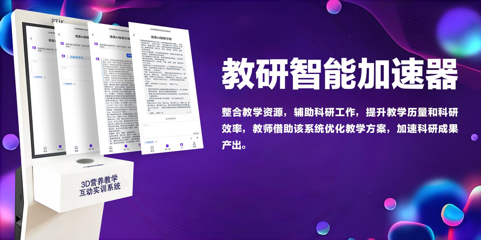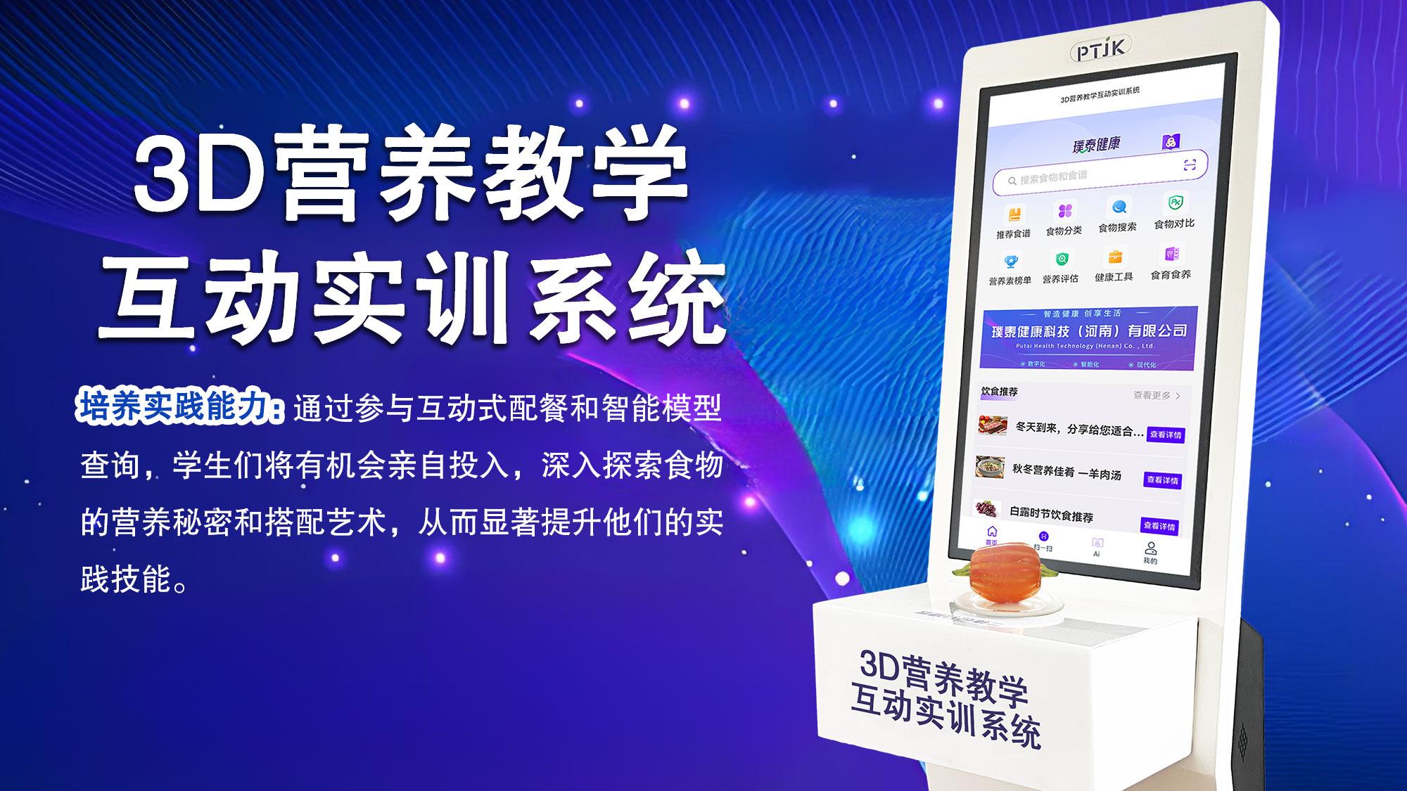 璞泰健康科技(河南)有限公司围绕两大创新系统构建核心产品与服务,分别是3D营养教学互动实训系统与多样人群营养支持健康教育系统。二者共同构成了“软件 + 硬件 + 智能模型”的一体化解决方案,旨在彻底革新传统的营养教学模式与健康管理实践。