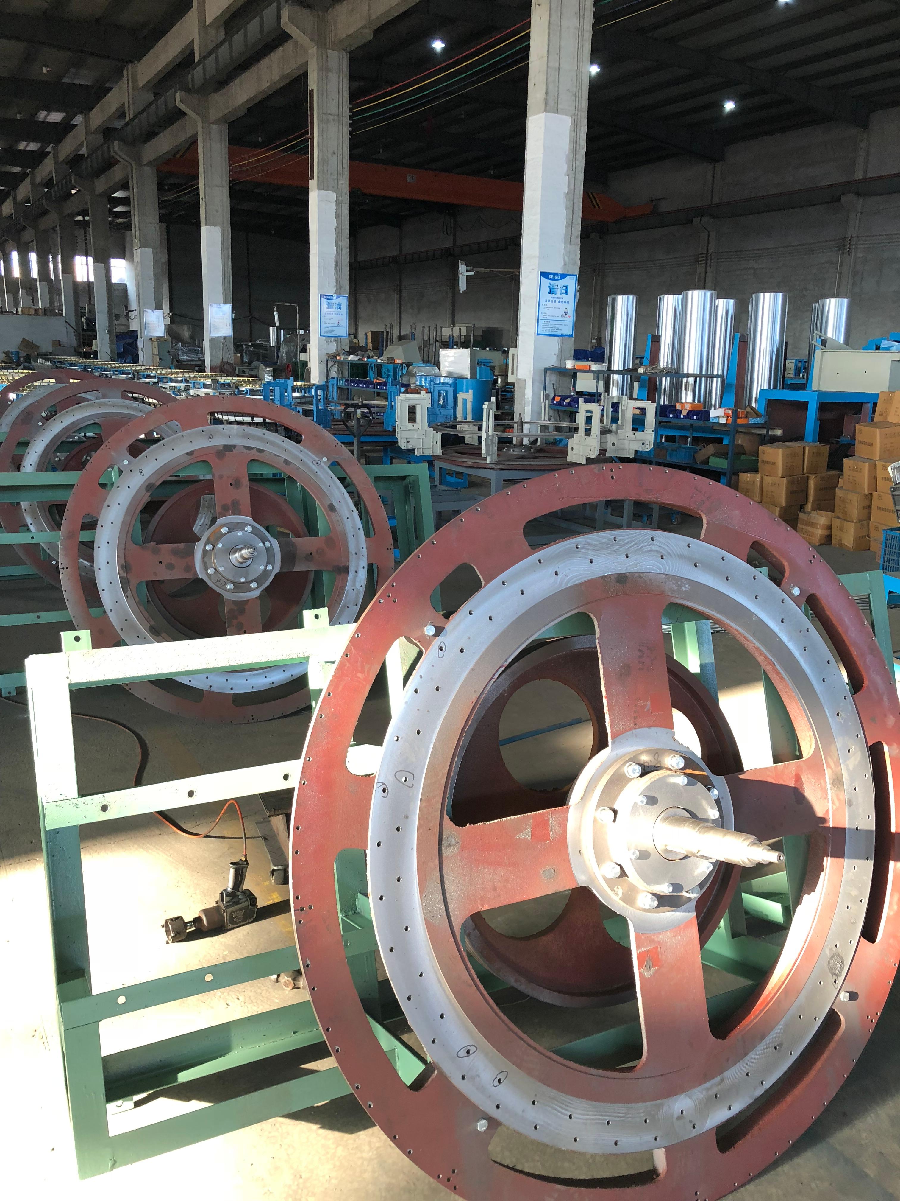高速拉丝机是公司的又一主打产品。高速塑料挤出平膜扁丝机组、高速扁纱挤出机,采用微处理器控制,在吸收国际先进技术的基础上,可实现技术数据的设置和显示全数字化。主要部件采用优质产品,生产线扩大了L/D比,采用新型分离螺杆,并在挤出机螺杆锅上拓宽了混合熔炼区,采用优质钢材进行特殊加工,塑化效果好,能耗相对输出低。对于平板薄膜拉伸线的更换过滤系统,公司采用先进的自动换带过滤机,将烤板改造成先进的热拉丝炉,主要技术指标达到国际先进水平。缠绕机采用无摩擦传动,恒张力卷绕,纤维鼓成型质量好。该生产线具有速度快、成品率高、能耗低、纤维鼓成型质量好等特点,结构紧凑,外形美观,运行平稳,控制灵活可靠,制造工艺复杂,操作方便,生产可靠,可用于生产扁平纤维状热塑性塑料,如聚丙烯(PP)和高密度聚乙烯(HDPE)等。