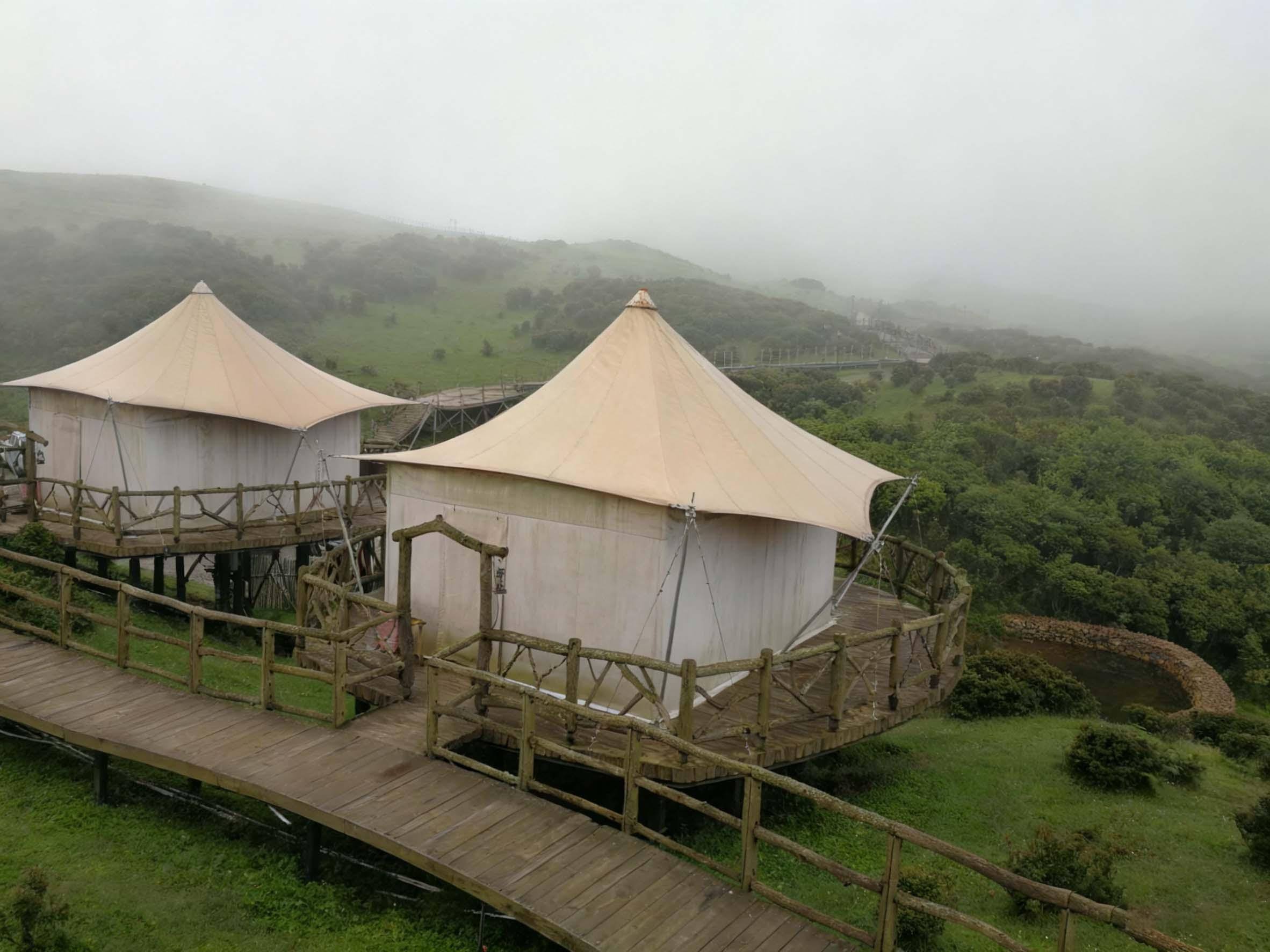 酒店露营帐篷结合了酒店的舒适性和露营的趣味性。它既可以提供舒适的住宿环境,又能让人们亲近大自然。这种帐篷通常配备了高品质的床铺、家具和设施,让人们在露营的同时也能享受到酒店级别的服务。