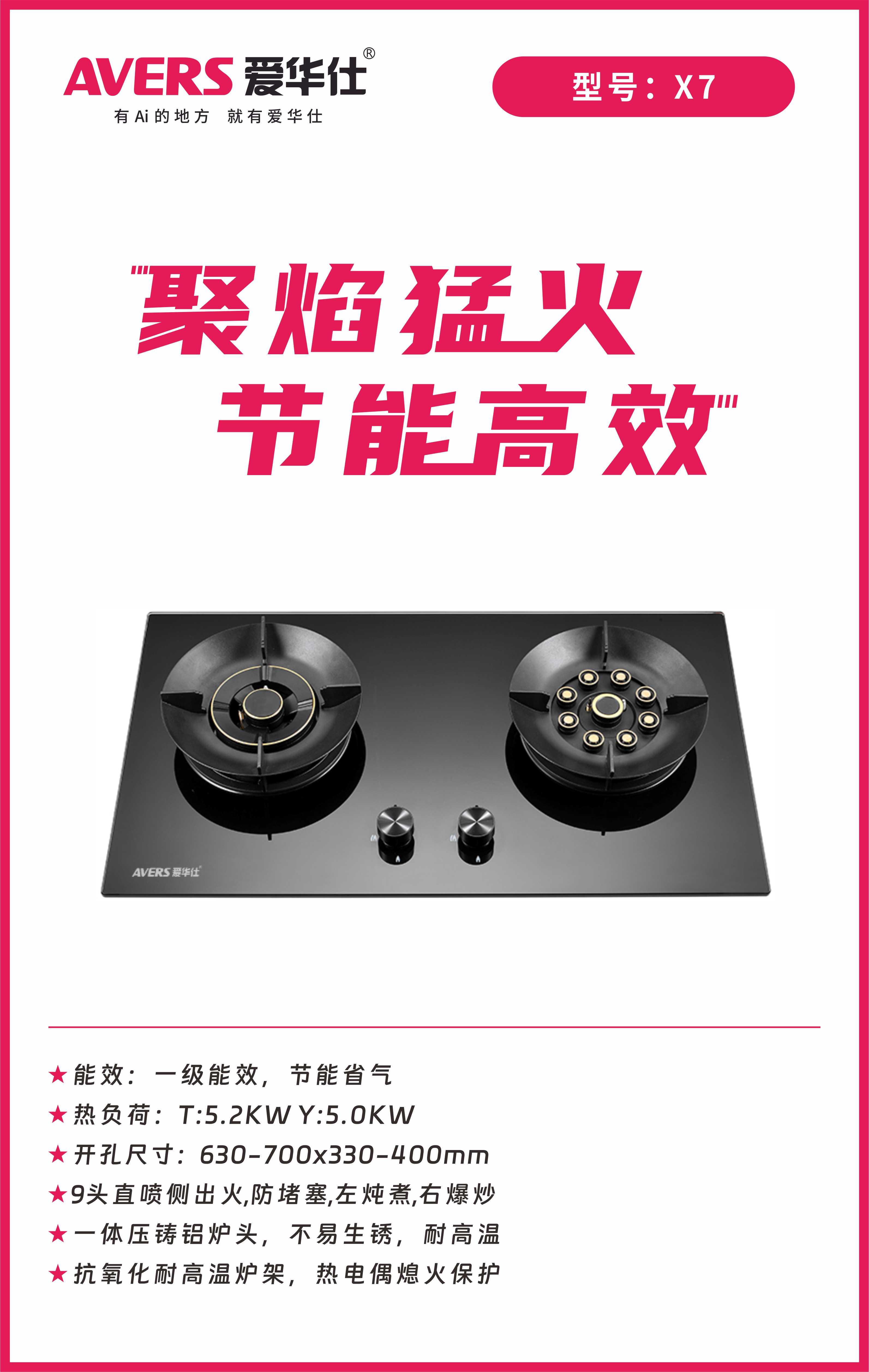 中山市爱华仕智能家居有限公司主营产品众多,其中全进风燃气灶、超高热效率燃气灶具、超高热效率燃气灶、超一级能效燃气灶、新国标燃气灶等尤为突出。全进风燃气灶作为公司的明星产品之一,其独特的全进风设计,能够使燃气与空气充分混合,燃烧更加充分,提高了热效率,同时也减少了有害气体的排放。超高热效率燃气灶具采用了先进的燃烧技术,能够在短时间内产生大量的热量,满足家庭烹饪的需求。