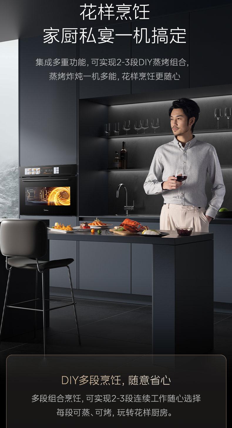 在功能方面,全系列产品采用微蒸烤炸炖一体的设计,可替代烤箱、蒸箱、空气炸锅、微波炉、炖锅等多款厨电,有效节省厨房空间,非常契合现代厨房的空间利用需求。例如,一个小家庭厨房空间有限,如果使用美的嵌入式微蒸烤一体机,就无需再放置多个不同功能的厨电,让厨房更加整洁有序。