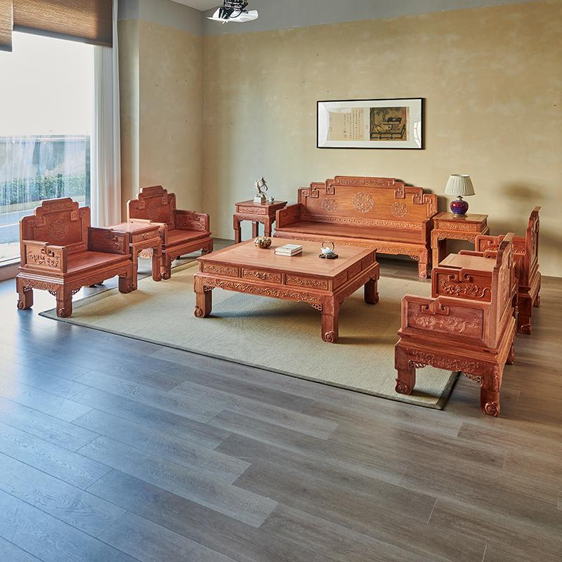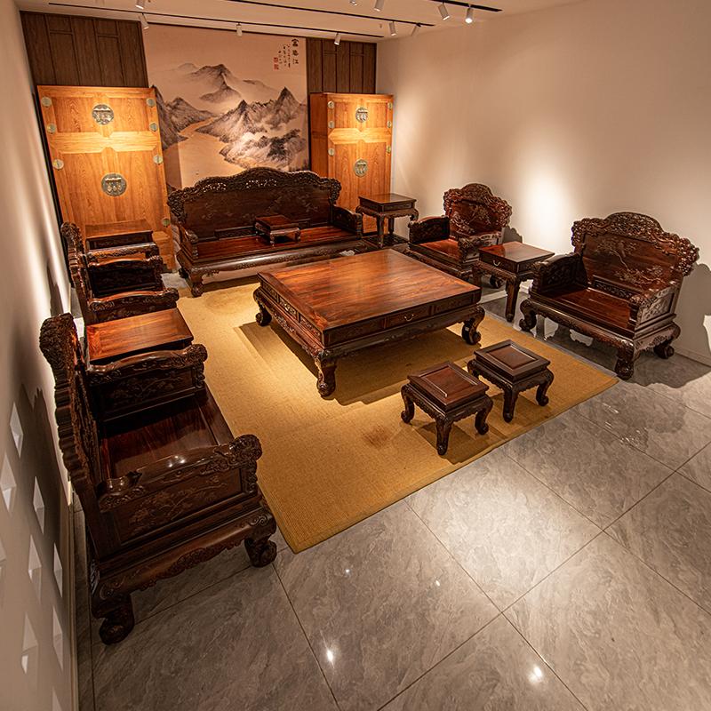 小叶紫檀沙发:采用珍贵的小叶紫檀木材制作而成。小叶紫檀具有坚硬的质地和独特的纹理,使得沙发不仅具有极高的观赏价值,还具有很好的耐用性。这种沙发是红木家具中的精品,能够彰显主人的身份和品味。