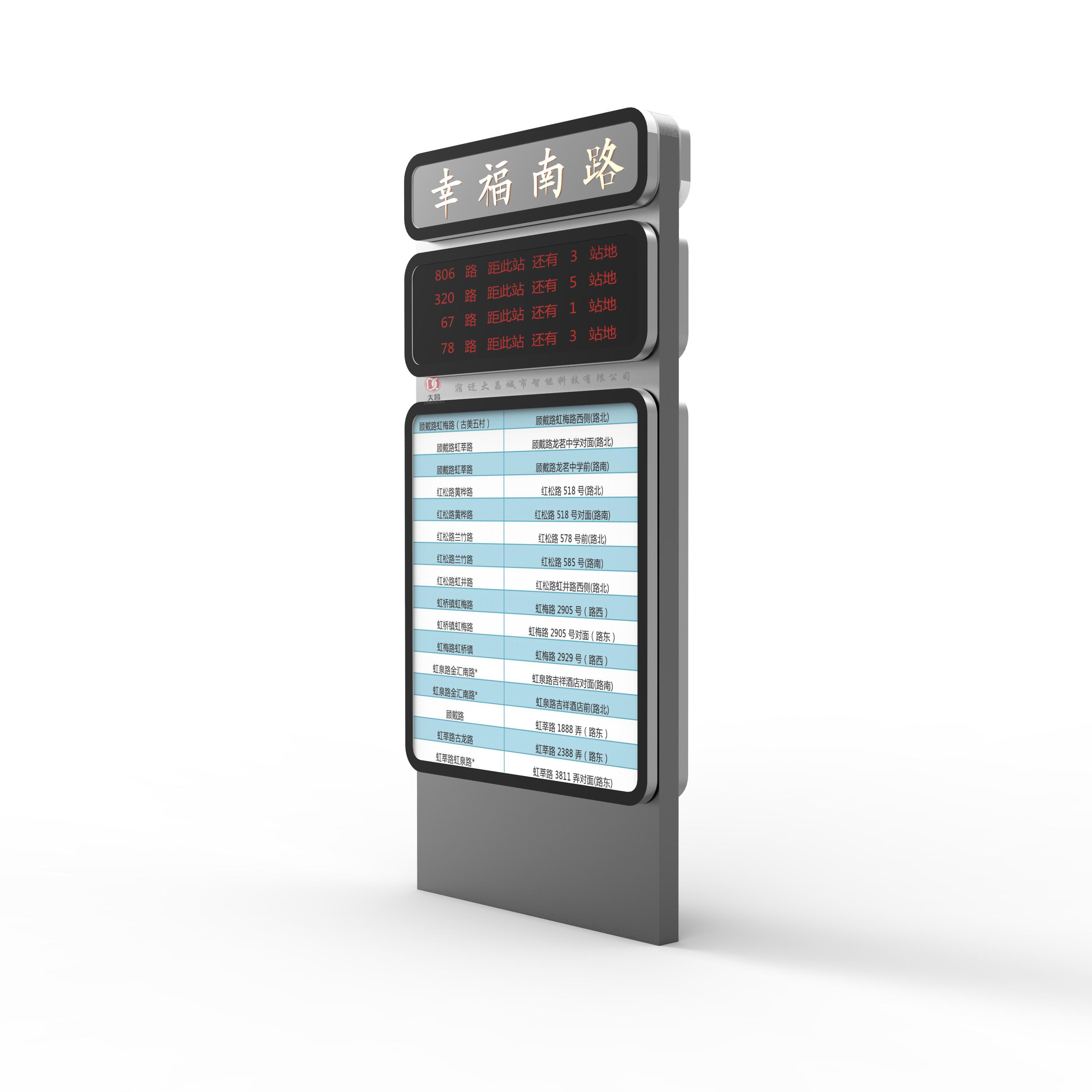 对于公交站牌定做业务,宿迁大昌城市智能科技有限公司能够根据客户的具体需求,提供个性化的设计方案。从站牌的尺寸、材质到颜色、图案等方面,都可以进行定制,确保满足客户的特殊要求。在智能公交站牌的研发上,公司不断引入新的技术和理念,提升产品的智能化水平。例如,通过与公交运营管理系统的对接,实现了公交车辆的实时监控和调度,提高了公交运营的效率。