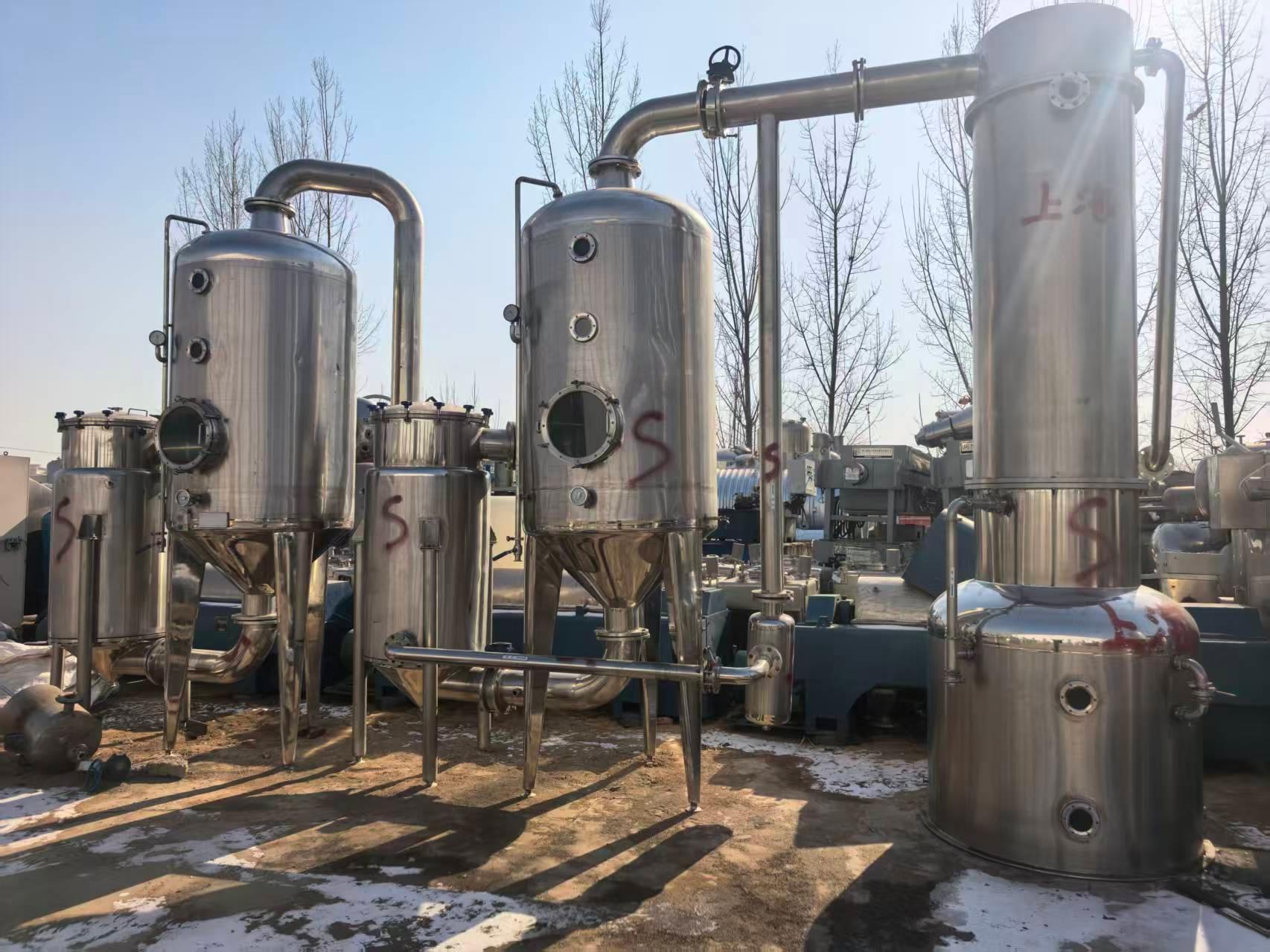 三效二手蒸发器是一种高效的蒸发设备,通过多次利用蒸汽的热能,提高了能源的利用率。它可以在较低的温度下进行蒸发操作,减少了物料的热损失和热敏性物料的分解,广泛应用于化工、食品、制药等行业的蒸发浓缩过程。