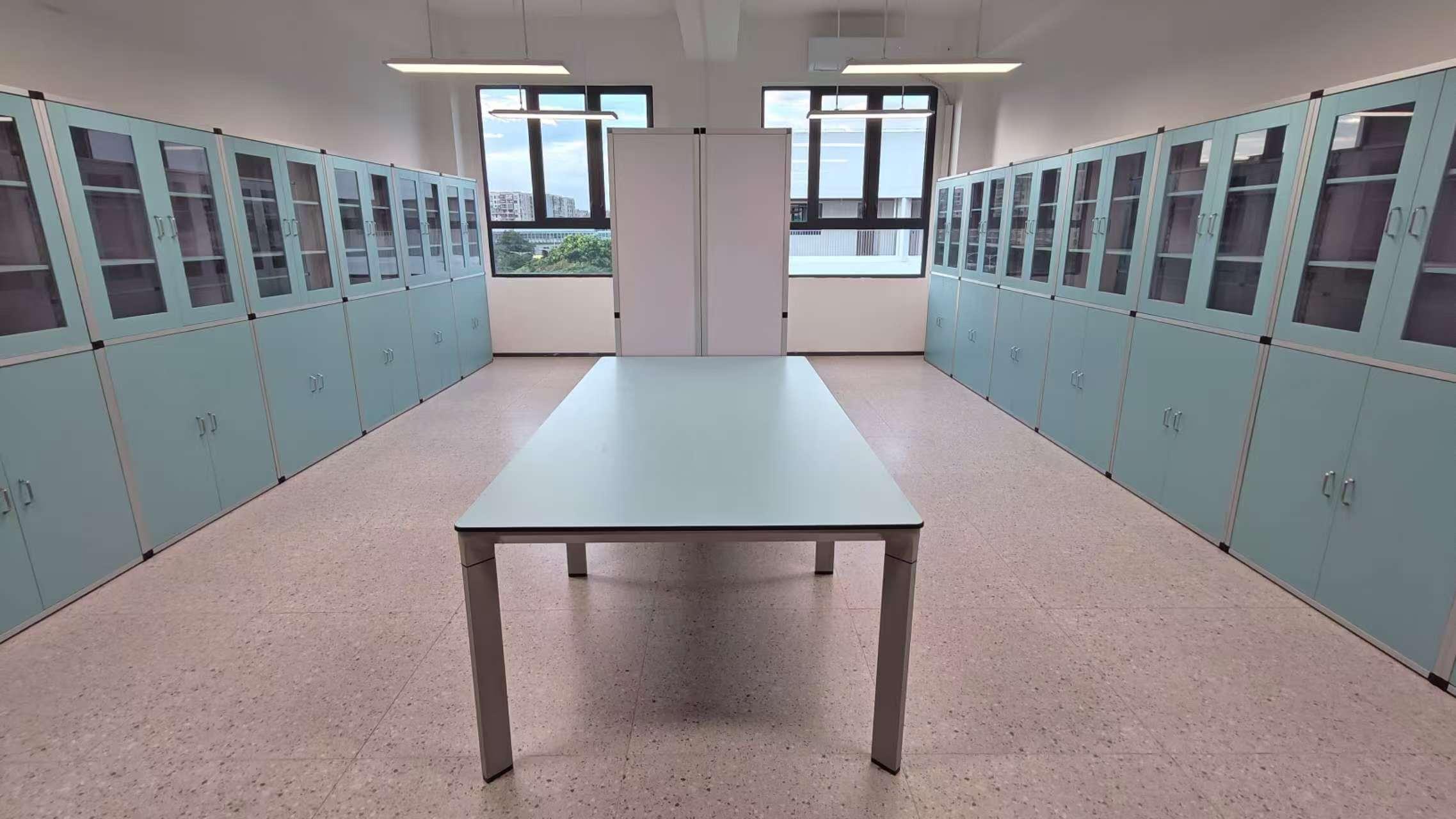 理化生智能实验室(核心硬件)覆盖E/H/T/A/L五大系列实验室产品,搭配专用设备,满足不同学科与场景需求。核心实验桌 / 台方面,E系列为一体式钢架,12.7mm实芯理化板,耐酸碱防火;H系列是铝合金框架,轻便灵活,预留收纳与电源位;T系列为全钢结构,防腐耐用,适配常规教学;A系列是铝框架 + 陶瓷板,人体工学,收纳规整;L系列是铝框架 + E0级生态板,专为化学实验室设计。顶装塔吊系统中,E系列一体式摇臂塔吊风水一体、触控屏、折叠省空间;H系列塔吊集风水电气网络于一体,多工位、可升降;A系列物理绳索吊塔绳索驱动、全域移动、低噪适配精密实验。配套智能设备包括智慧教师升降讲台,全钢 + 理化板,集成显示与水槽;物联智控系统可APP远程控制、环境监测、设备管理;智净污水处理单次处理1吨,达标GB8978 - 1996三级排放;智净废气处理采用活性炭吸附,净化率>99%;危化品管理系统可智能监测、身份锁、声光报警、全生命周期管控;一体化移动教学推车具备双摄、无线麦、多通道录制、一键直播功能。