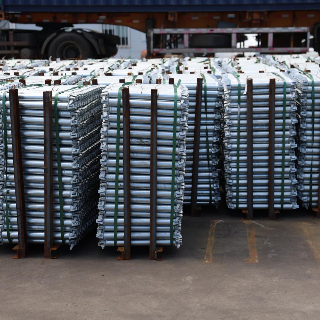 唐山五方实业有限公司主营盘扣式脚手架,光伏支架、配套踏板、钢管等金属结构制品,还可提供地面光伏、屋顶光伏EPC专业化施工。公司始终坚持绿色发展理念,充分发挥特色技术优势,成功研制出以镀锌盘扣圆盘为核心的新型脚手架系统。通过高强度立杆圆盘和自锁式楔销连接等创新技术,搭建效率和稳固性显著提升,搭建速度比传统脚手架快50%以上,同时创新性的镀锌工艺使产品寿命延长,兼具经济性与环保性。