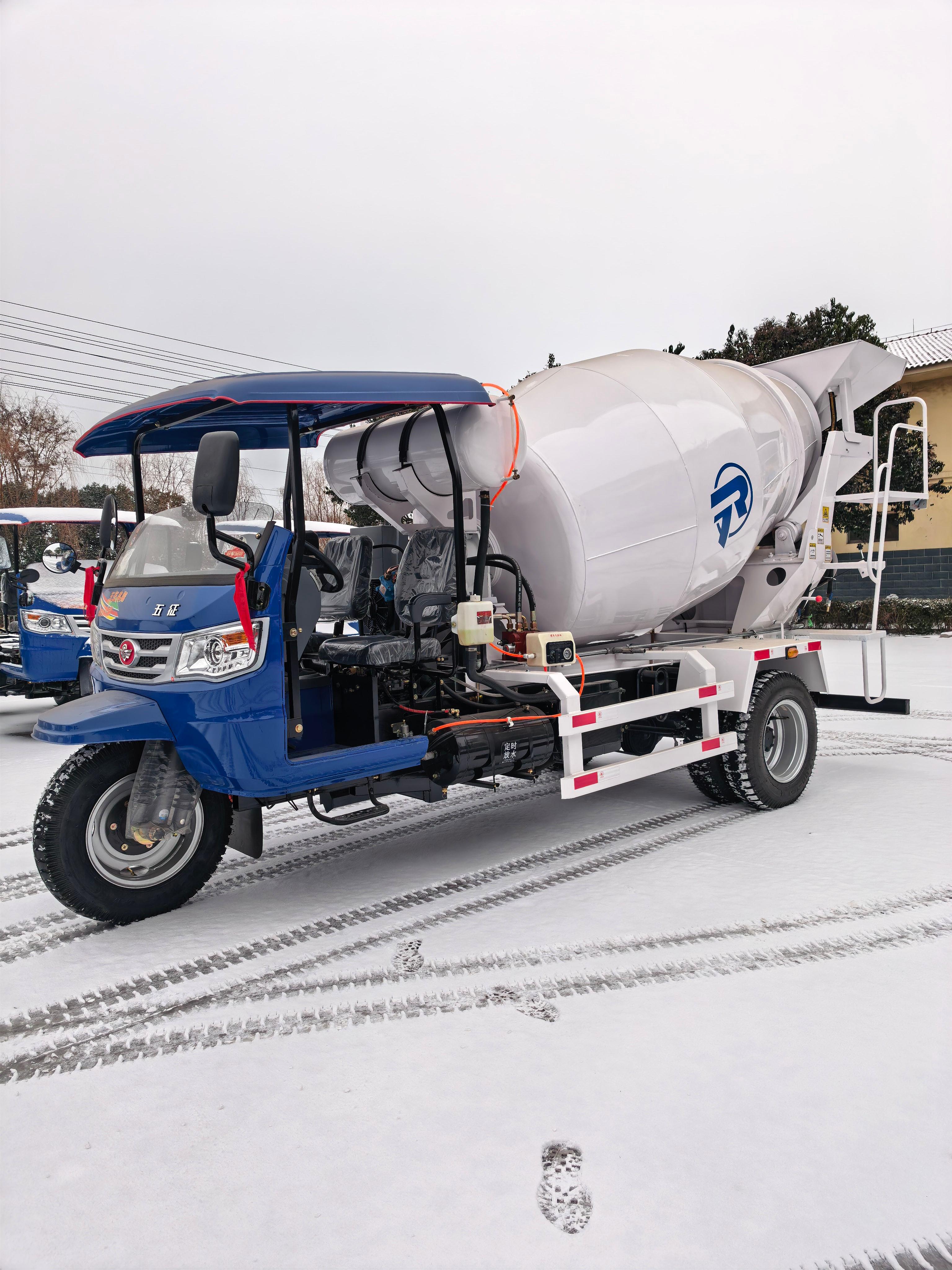 **履带式搅拌车**:具有出色的越野性能和稳定性,适用于复杂地形的工程建设,如矿山开采、山区道路施工等。其履带设计能够提供强大的抓地力,确保车辆在泥泞、崎岖的路面上也能顺利行驶,保证搅拌工作的顺利进行。