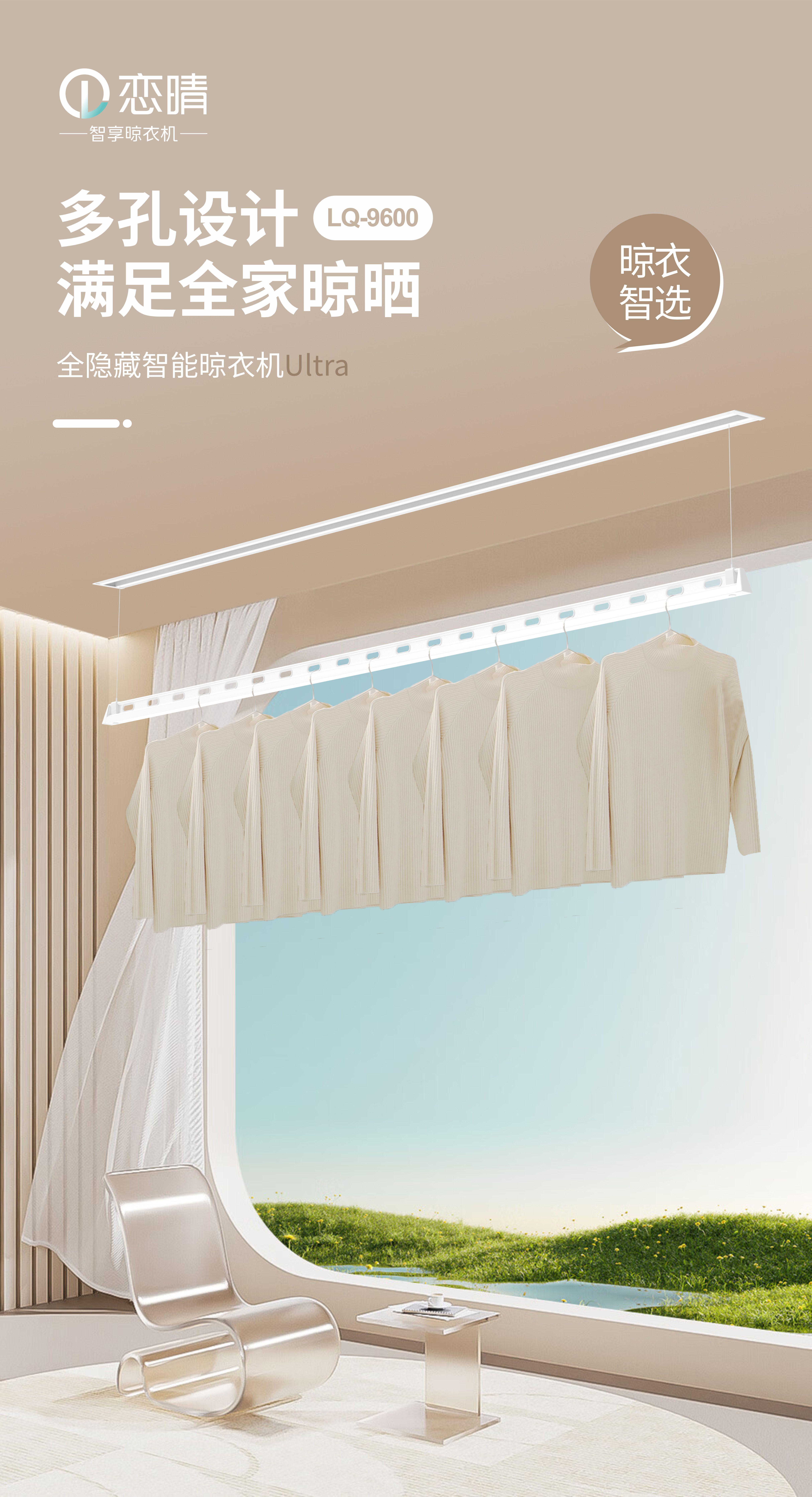 晾衣架作为家庭必备的晾晒工具,广东恋晴智能家居有限公司生产的晾衣架具有稳固耐用的特点。其采用优质的材料制作,能够承受较大的重量,保证衣物晾晒的稳定性。同时,晾衣架的设计合理,能够充分利用空间,满足家庭不同的晾晒需求。