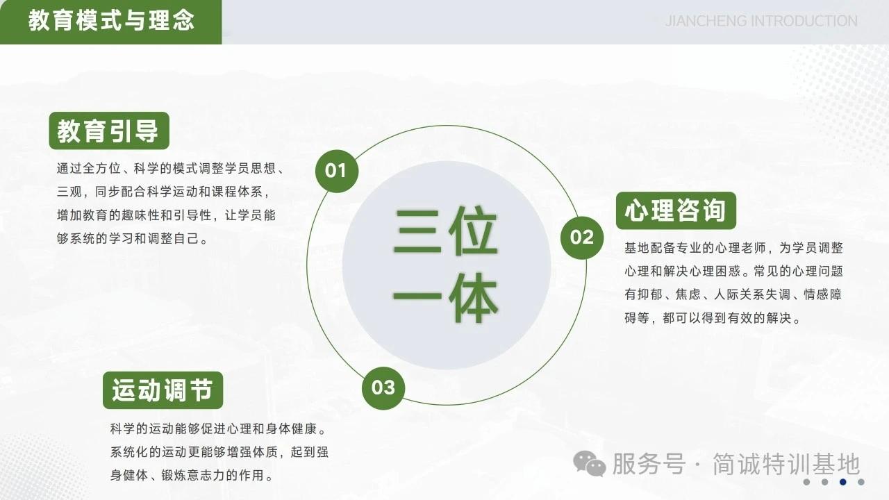 基地秉持“科学管教、爱心育人、个性定制”的办学理念,摒弃传统粗放式管教模式,构建全封闭式军事化管理、专业心理疏导、综合素质拓展、一对一文化课补弱四维一体的综合教育体系,统筹行为矫正、心理建设、品格塑造与学业夯实四大核心目标,以专业化、系统化、人性化的教育模式,引导叛逆青少年回归成长正轨,助力家长破解教育难题,维系家庭和谐,助力青少年重拾成长信心、树立正向三观。