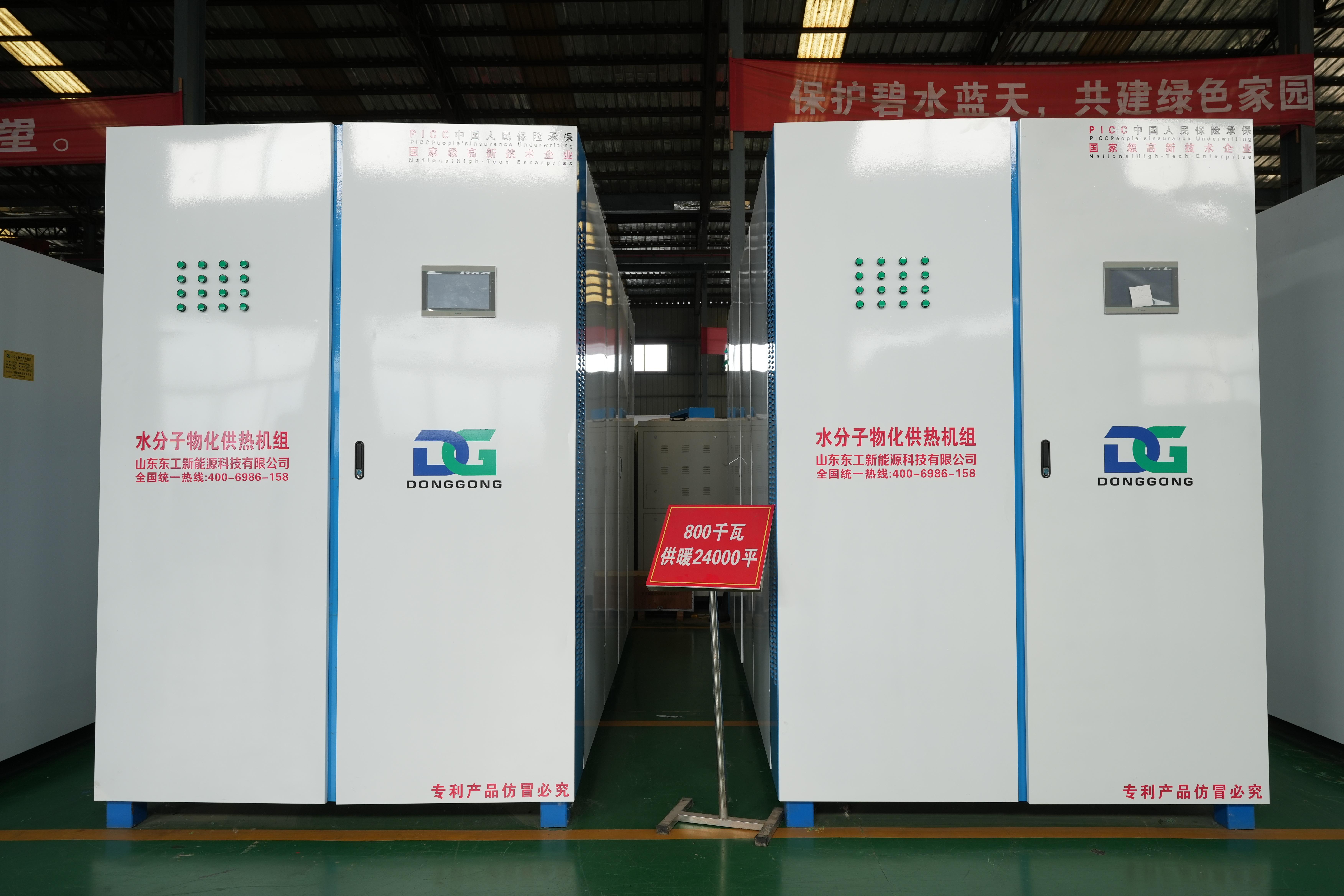 水分子物化供热机组也是公司的核心产品之一。2020年,山东东工新能源科技有限公司以“低碳、节能、环保”为使命潜心研发水分子物化供热机组。该产品具有很高的科技含量,赋予采暖设备以全新的特点和内涵,在国内处于技术先进水平。它突破了1kw供暖10平米的“魔咒”,实现了1kw供暖30平米的突破,这一技术的革新为供热行业带来了新的发展方向。水分子物化供热机组不仅能够为用户提供高效的供暖服务,还能有效降低能源消耗,减少对环境的影响。