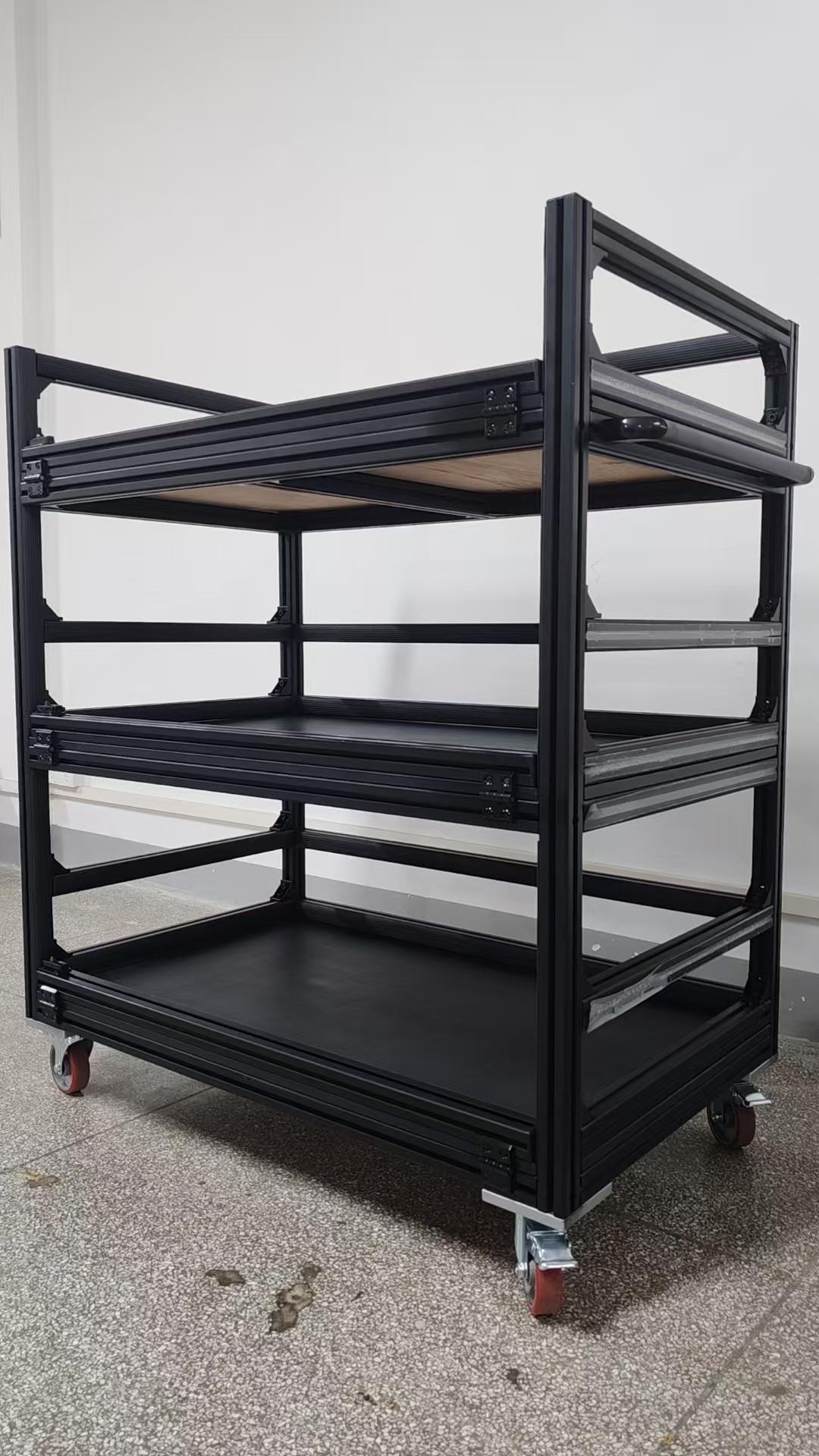 铝合金周转车和铝型材周转车同样具有独特的优势。铝合金和铝型材材质具有重量轻、强度高、耐腐蚀等特点。相较于传统的周转车,铝合金和铝型材周转车更加轻便,易于操作,能够减少操作人员的劳动强度。而且它们的外观美观大方,能够提升工厂的整体形象。此外,这些周转车的结构设计合理,可以根据需要添加不同的配件,如挂钩、隔板等,以满足不同物料的存放需求。