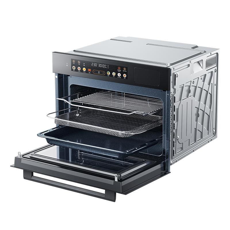 SX系列蒸烤一体机,SX5为55L腔体容量,配备13.4英寸超大彩屏与APP互联智控功能,可实现2 - 3段DIY蒸烤组合,通过蒸烤多重组合算法贴合健康饮食的制作需求;SX7拥有78L大容量腔体,2300r/min热风转速搭配温湿智控系统实现智能控温空气炸,杯水鲜蒸技术让蒸汽利用率提升96%,腔体内积水情况有效减少。