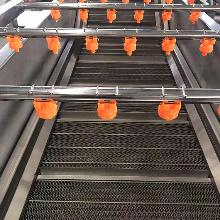 大姜清洗机是山东皓铭食品机械有限公司针对大姜清洗而设计的专业设备。在清洗大姜时,物料通过气泡清洗段,能够刷洗生姜表面的大部分泥沙,随后自动提升到高压清洗环节进行彻底清洗。喷淋段采取可调节喷头,能控制喷头出水量,更好地保护生姜表皮,达到产品出口标准要求。具有省水、省电、省时、干净卫生,不损坏产品等优点,效率高、占用面积小、安全可靠,安装简单、操作简易,维护方便,能耗低。