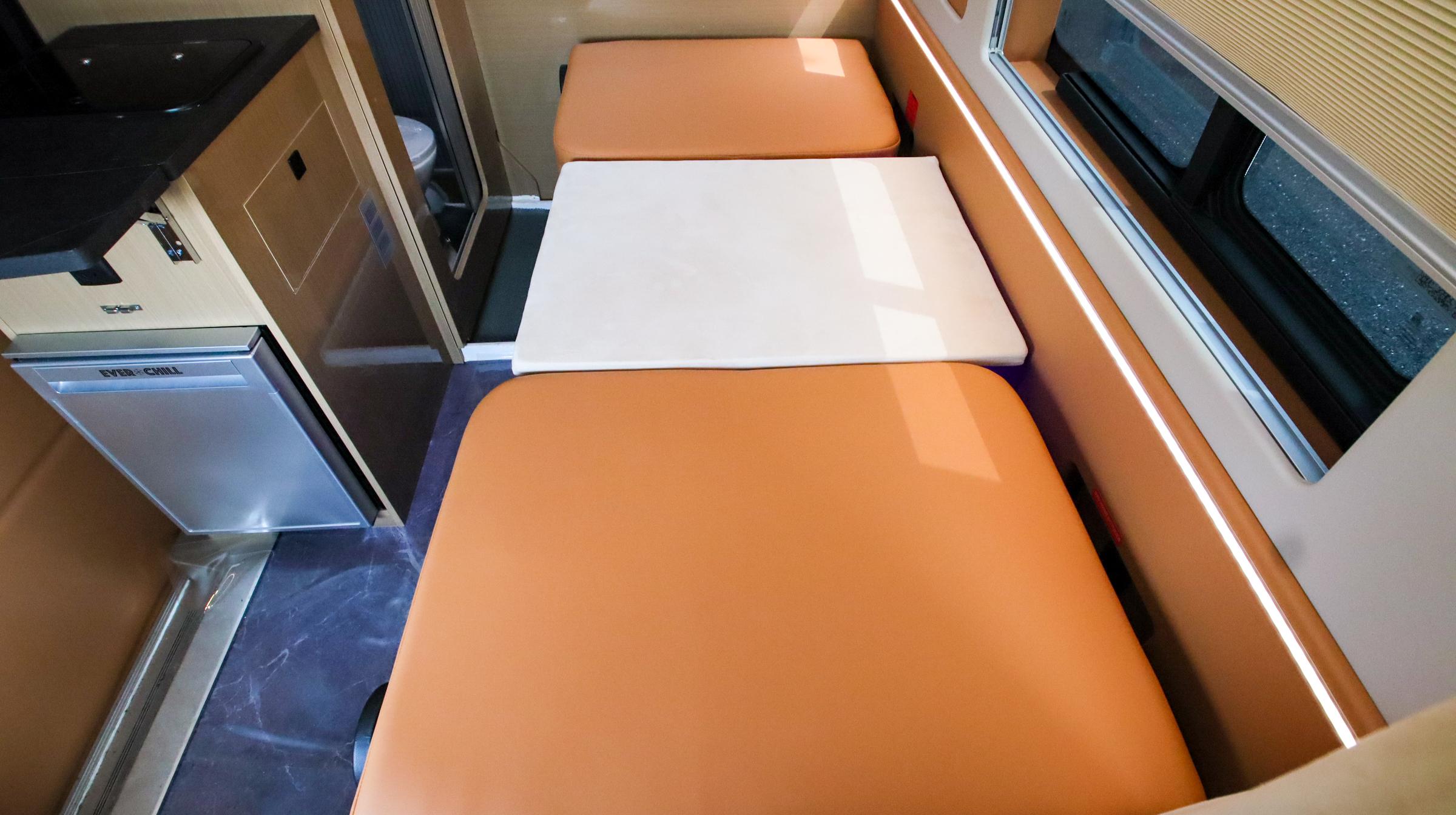 福顺中轴高顶趣蜂B710pro适合露营旅居。福顺中轴高顶底盘,蓝牌C照可驾,通过性佳。2.0T柴油 + 8AT自动挡,适配多路况。48V 16度电 + 580W太阳能 + 3000W逆变器,48V直流空调稳定耐用。六座两卧布局,1.9×1.2m尾部横床,1.85米内高不压抑,厨卫配置齐全,120L清水箱保障用水,适配家庭及好友出行。