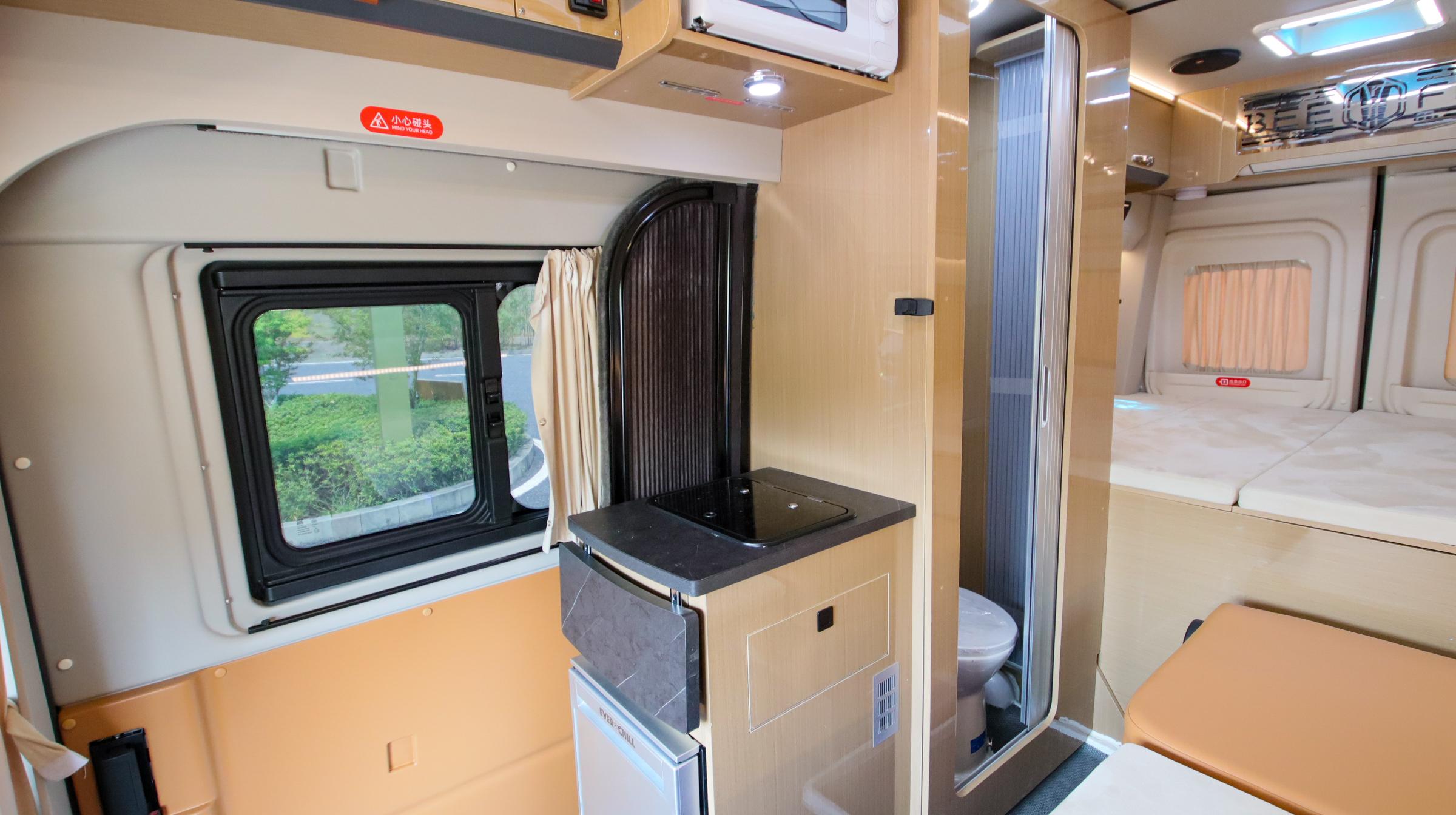 下面为大家详细介绍江西趣蜂专用车装备有限公司的部分主营产品。趣蜂B520pro(江铃福顺短轴中顶)是一款城市代步与旅行兼顾的高性价比之选。整车5160×2098×2470mm,蓝牌C照可驾,小巧灵活,停车通行无压力。它搭载2.0T柴油 + 8AT自动挡,动力平顺省油,首任车主动力总成终身质保。核心搭载48V 300Ah磷酸铁锂16度电,搭配3000W逆变器、580W太阳能硬板,水电补给齐全。采用五座两床布局,尾部1.85×1.2m横床,配备隐藏式卫浴、双厨房等,20万内全能实用。