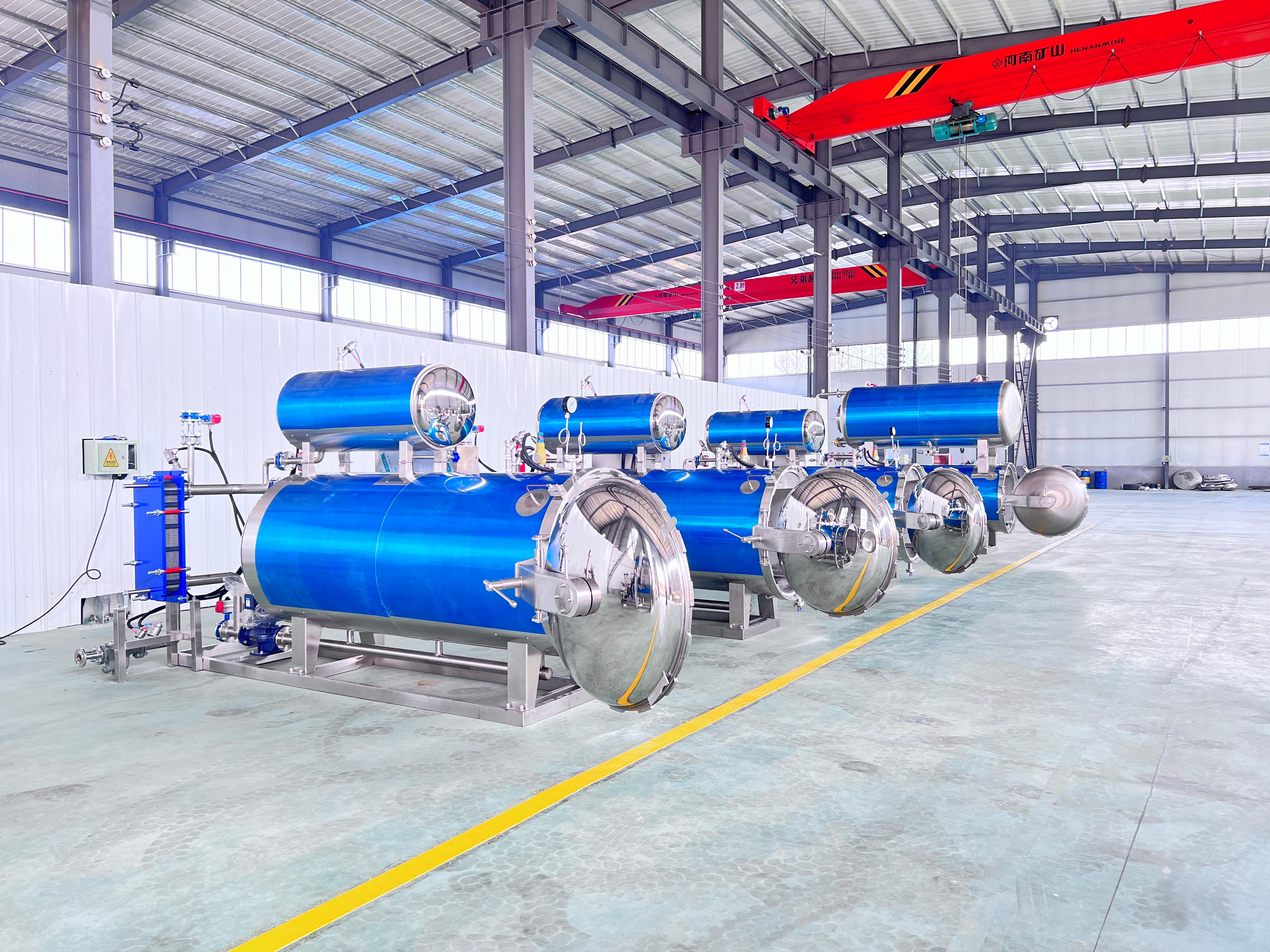 双层杀菌锅:采用双层结构设计,能够提高杀菌效率和质量。内层锅用于放置食品,外层锅用于加热和保温。双层杀菌锅可以同时进行杀菌和冷却,缩短了生产周期,提高了生产效率。
