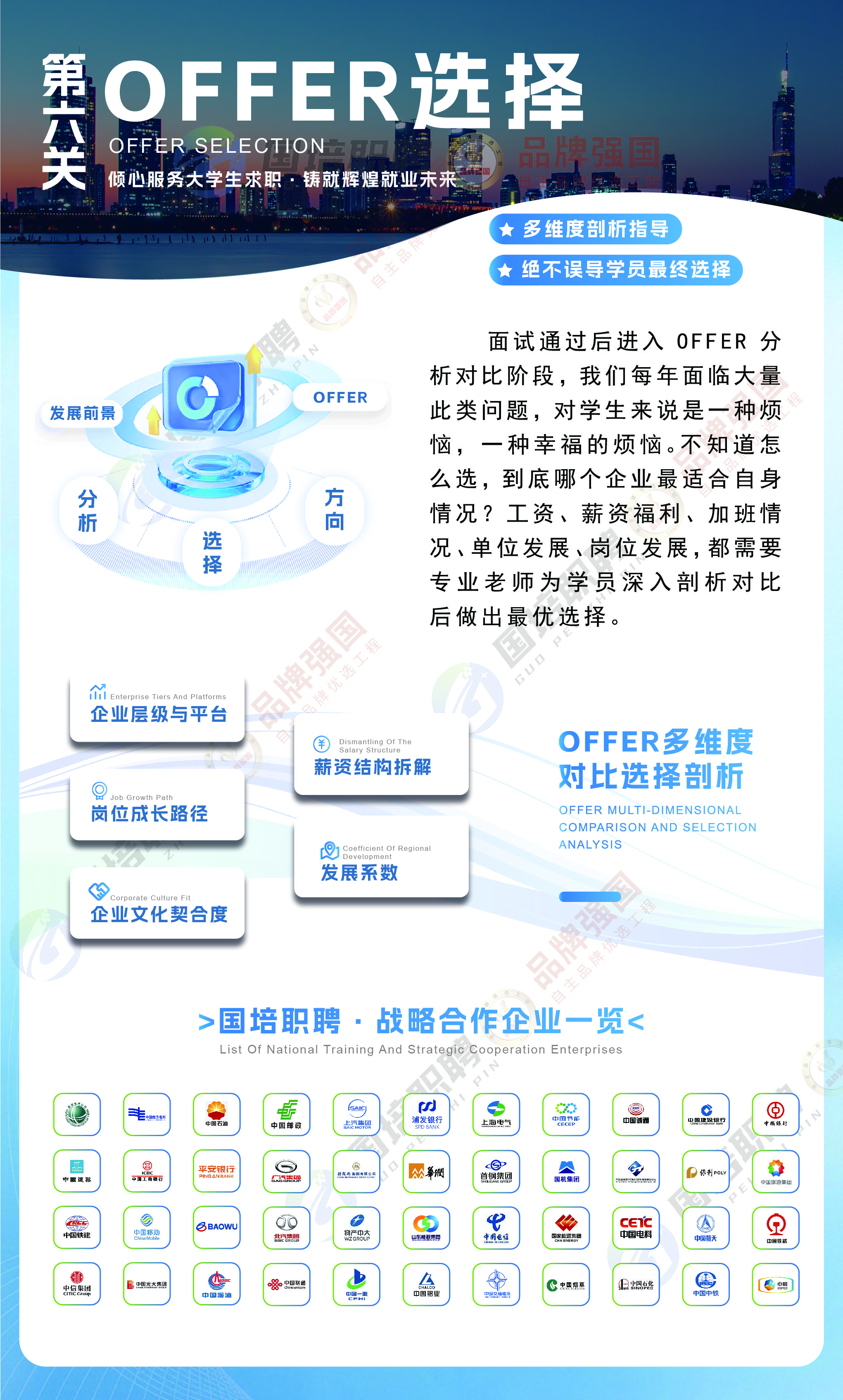 北京国培职聘科技有限公司的创立初衷是倾心服务大学生求职,直击应届生央国企求职难的行业痛点,为大学生提供专业、全面的求职指导,助力应届生铸就辉煌就业未来。其品牌理念是应时代需求,做高质量就业服务助推者,以全流程、精细化的辅导服务,实现大学生央国企求职一站式上岸。品牌愿景是成为国内央国企就业服务领域的优良品牌,持续打磨专业的求职辅导体系,为更多大学生提供优良的央国企求职指导服务,推动大学生高质量就业。