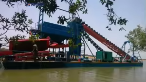 淘金船:是专门用于淘金作业的船舶。它通过一系列的筛选和分离设备,将河沙中的金粒提取出来。淘金船具有高效、环保等特点,能够在保证淘金效率的同时,减少对环境的影响。