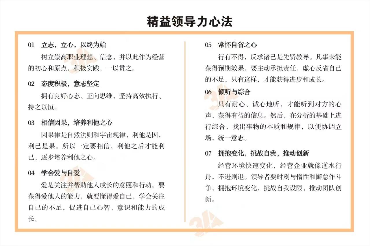 公司的核心产研能力也十分突出,聚焦于精益战略、精益生产、精益TPM、人力资源管理、精益研发、精益营销、数字化工厂规划等经营管理技术研究、培训及项目咨询。构建了3A精益造物育人机制、精益化集成产品开发、精益全员营销三大原创理论体系,还有精益领导力心法、精益经营十原则、精益改善十原则等原创精益哲学,发表论文数百篇、出版精益相关书籍40余本。