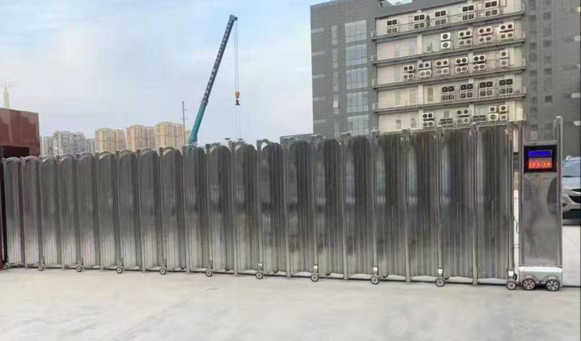 公司的电动白钢伸缩门采用优质的白钢材料,具有坚固耐用、美观大方的特点。白钢材质不仅具有良好的抗腐蚀性,能够适应各种恶劣的环境条件,而且表面光滑,易于清洁和维护。电动白钢伸缩门的伸缩功能非常灵活,可以根据实际需要进行自由伸缩,方便车辆和人员的进出。同时,该门体还配备了先进的电动控制系统,操作简单方便,只需轻轻一按按钮,门体就可以自动开启和关闭。