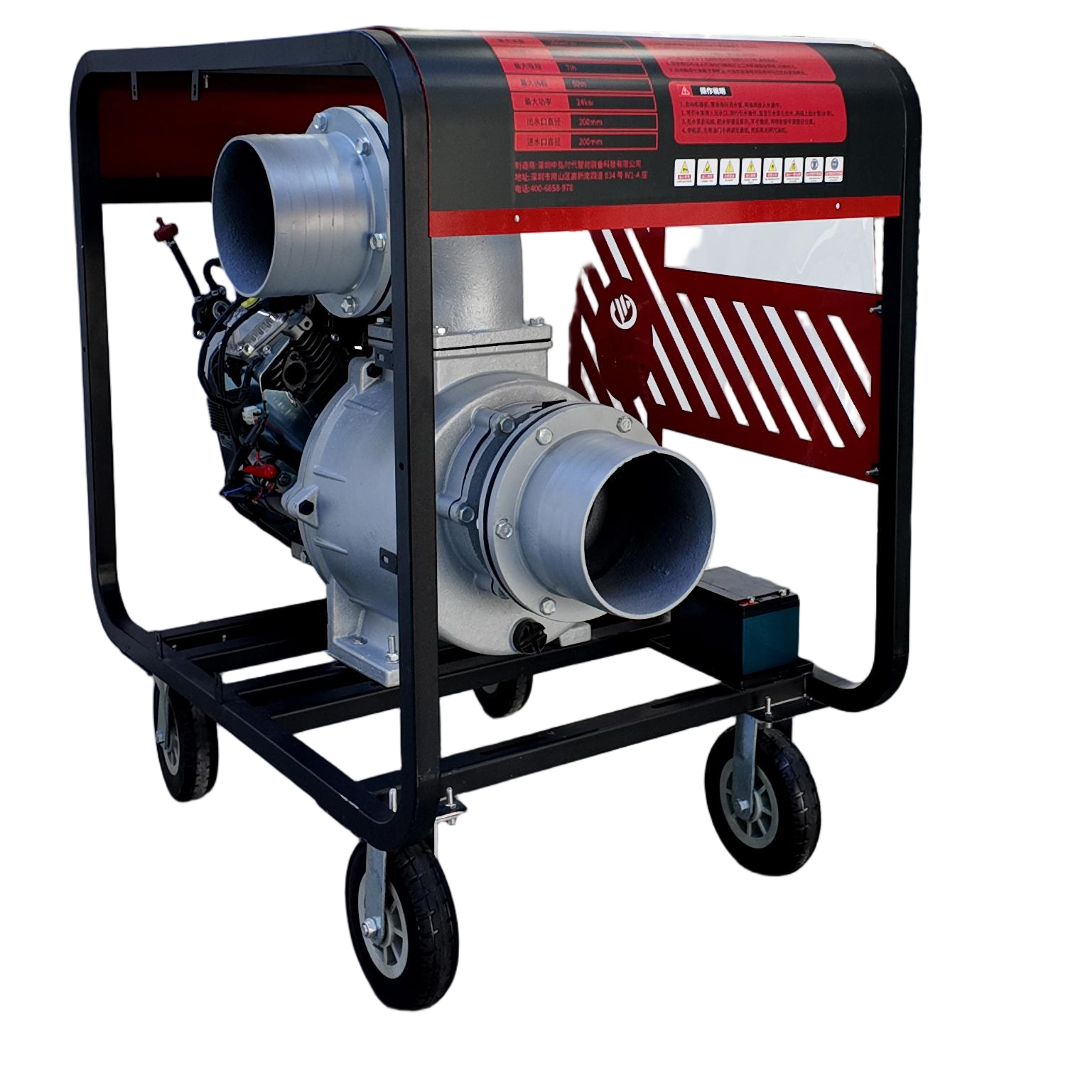 8寸排涝泵搭载24KW动力,能够实现200m³/H的大流量输出,可快速应对大面积洪涝灾害。对于一些大型的河流决堤、水库泄洪等造成的大面积积水情况,8寸排涝泵可以迅速投入使用,加快排水速度,降低灾害损失。