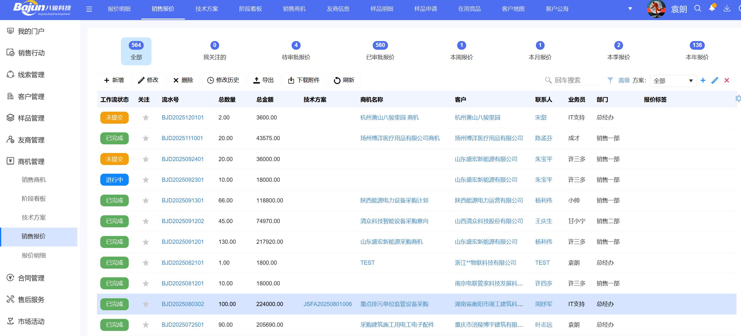 公司的核心产品八骏CRM系统是国内较为优质的可定制化CRM软件,专注销售全流程管理。其支持PC + 移动APP,可对接钉钉、企业微信,功能涵盖客户管理、销售自动化、商机跟踪、报价合同、订单管理、售后服务等。使用八骏CRM系统,企业可以更好地管理客户资源,提高销售效率,跟进销售机会,及时处理售后问题,提升客户满意度。