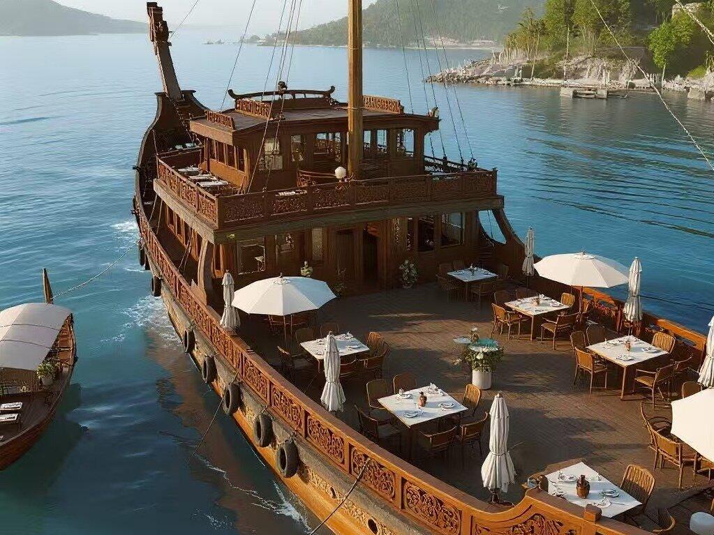 仿古餐饮船则是将传统的仿古元素与现代餐饮需求相结合。它的外观设计模仿古代船只的风格,具有浓厚的历史文化氛围。仿古餐饮船内部的装修也采用了传统的工艺和材料,让顾客仿佛穿越回古代,享受独特的用餐体验。