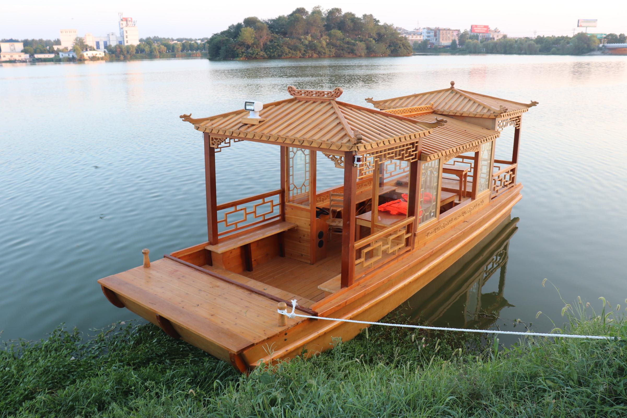 小型画舫船:小型画舫船则更适合一些小型水域或个人使用。江苏周氏木业有限公司作为小型画舫船源头厂家,生产的小型画舫船具有灵活便捷、操作简单等特点。它们可以用于家庭聚会、休闲垂钓等活动,为人们带来更多的乐趣。