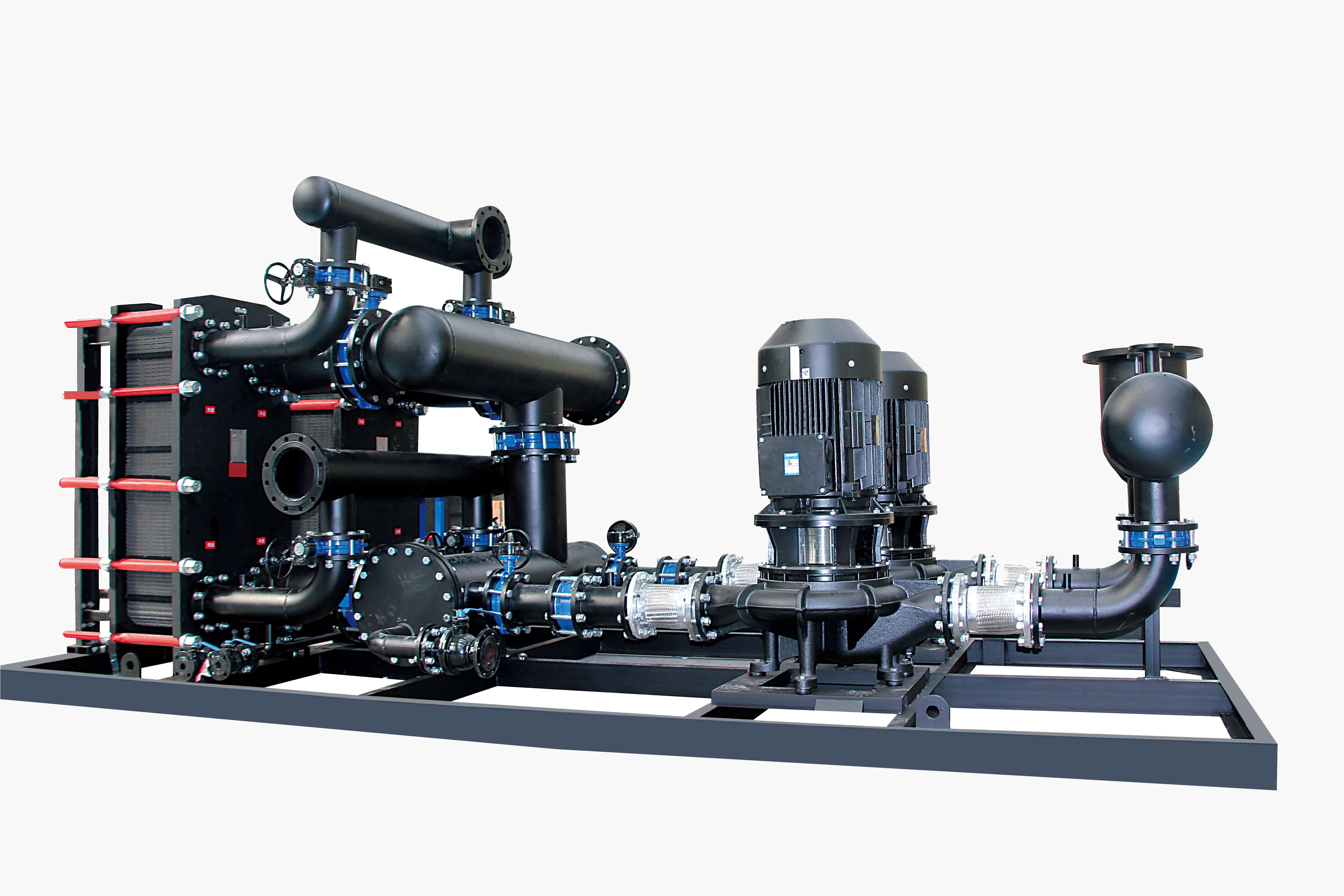 水水换热机组主要用于水与水之间的热量交换。它可以将高温水的热量传递给低温水,实现能源的回收和再利用。在一些工业循环水系统中,水水换热机组可以将排放的高温循环水的热量回收,用于预热新的循环水,降低能源消耗。