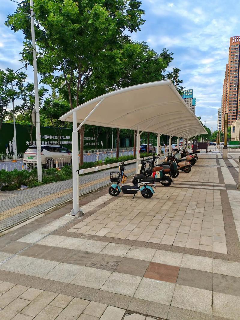 电动车棚是专门为电动车设计的停车设施。随着电动车的普及,电动车棚的需求也日益增加。义乌市恒伟膜结构工程有限公司生产的电动车棚,空间布局合理,能够充分利用空间,同时还配备了充电设施,方便电动车的充电。在一些小区、学校等地方,电动车棚为居民和学生的电动车提供了便利的停放和充电条件。
