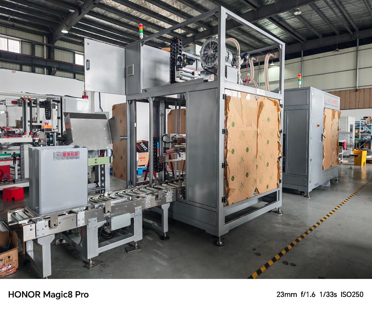 纸箱套袋机则针对纸箱包装。在物流、电商等行业,纸箱是常用的包装材料,为纸箱套袋可以进一步保护箱内物品,防止灰尘、潮湿等因素的影响。该公司的纸箱套袋机具有高度的灵活性,能够根据纸箱的大小和形状进行调整,确保套袋的紧密和美观。
